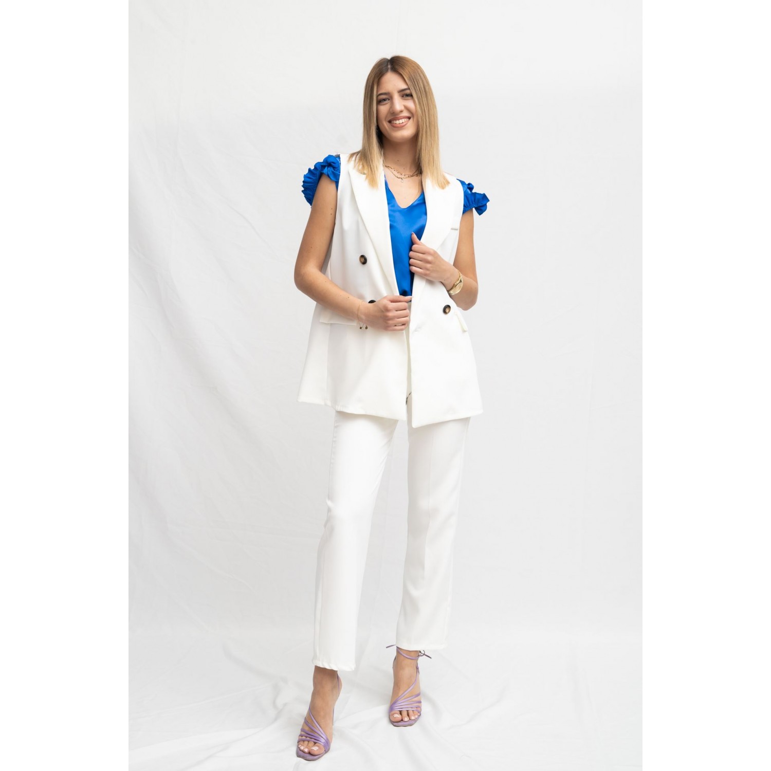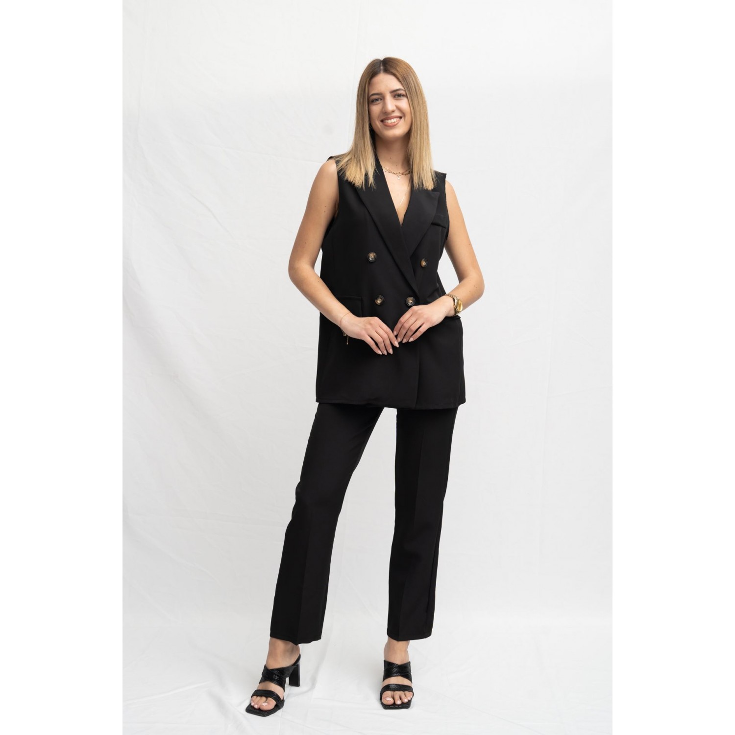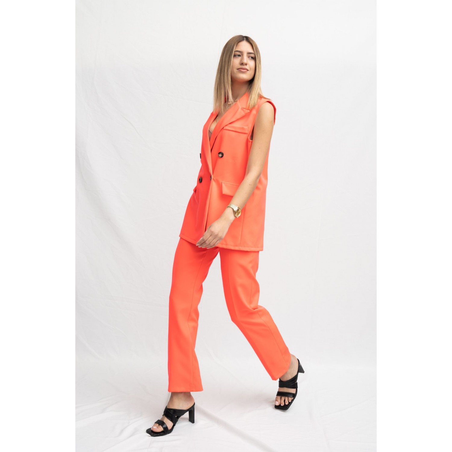Suit in 5 great colors. It has elasticated trousers with a zip and button closure. It has a sleeveless vest with buttons. The women's suit is one of the timeless options for elegant and stylish clothing, while this year it is again in the fashion trends . Many women may have associated it in their minds mainly with professional appearances, however this garment can be worn at any time of the day. Always depending on the combinations you will make and its design.