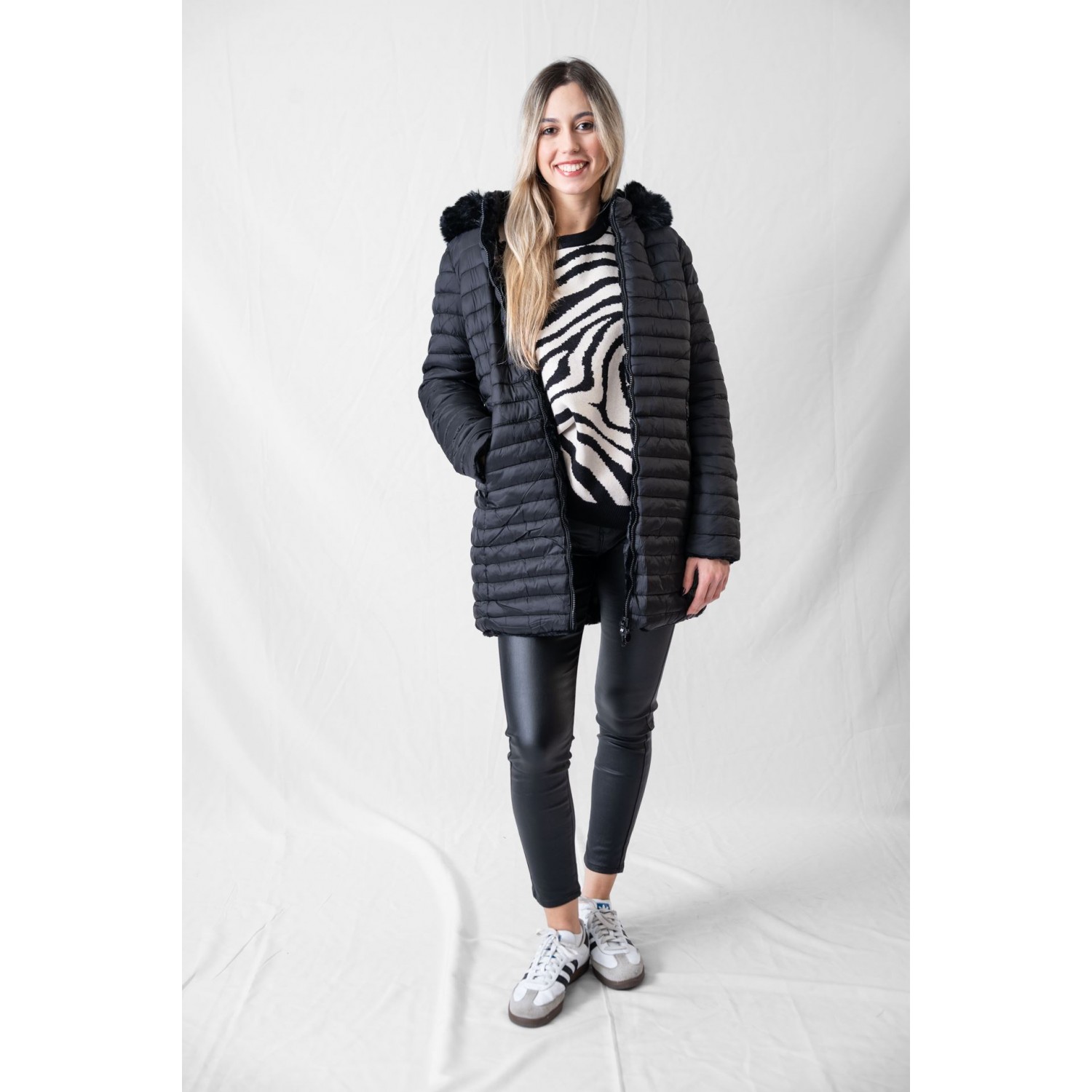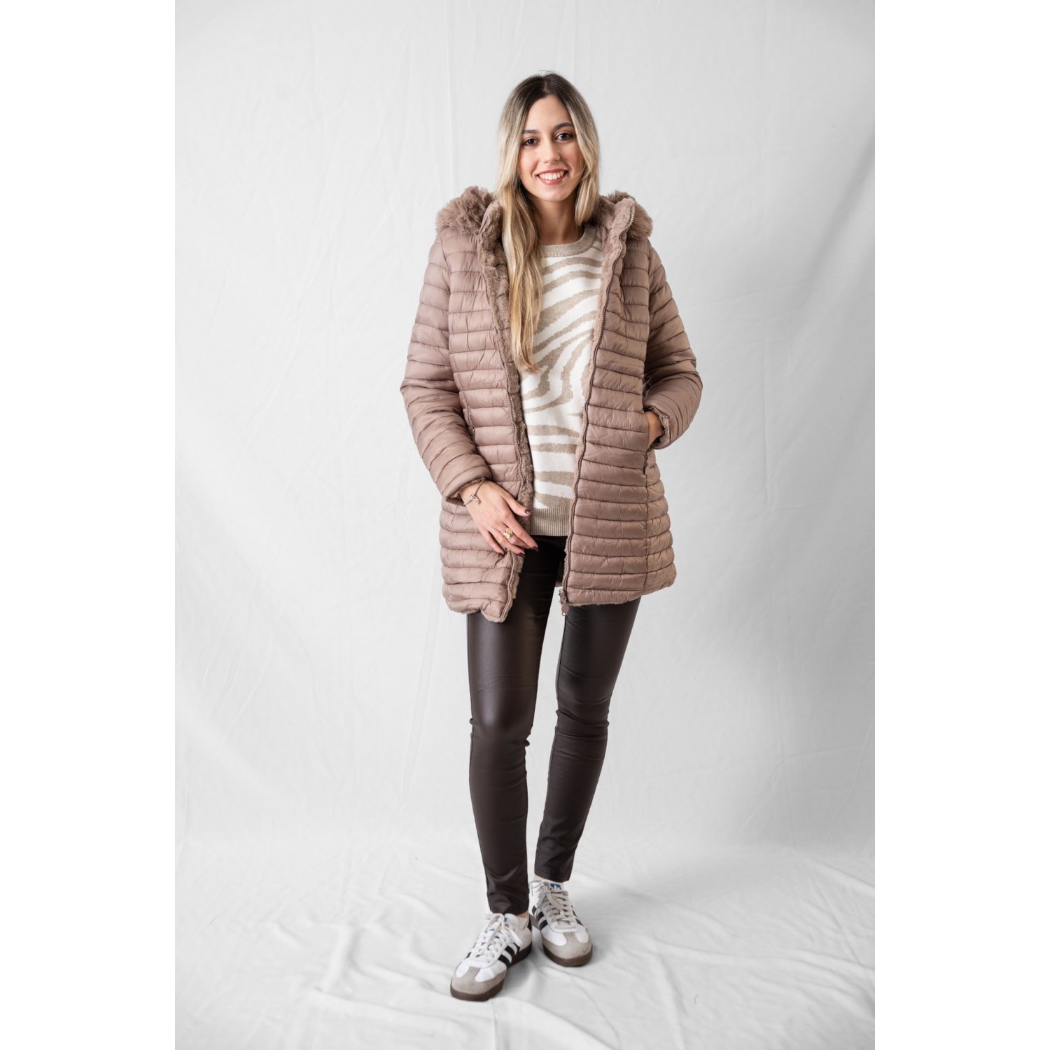 Long double-sided jacket with detachable hood and side pockets. Zipper closure. Jackets in the winter are absolutely essential for a complete outfit for a woman. Whatever style, pattern, color they have, they can be combined correctly and give a fantastic result! Ideal for rainy or very cold winter days, are long women's jackets. They can be combined with both tracksuits and leggings, as well as with the rest of your clothes .