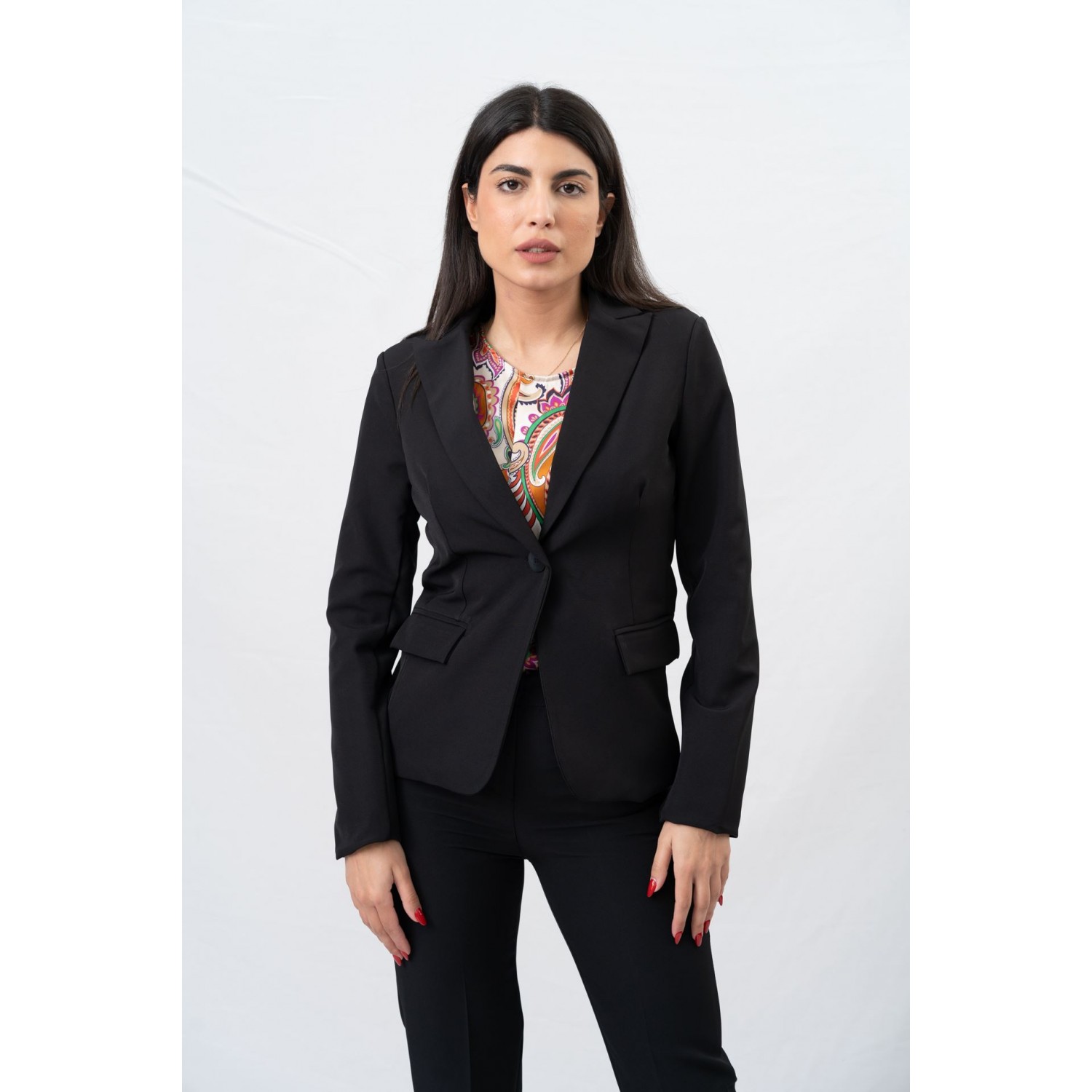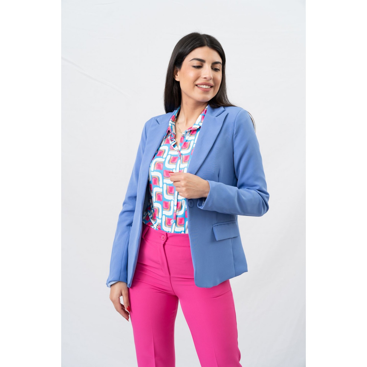 Jacket with collar and button closure. Dressing with a jacket can be a great idea for a professional look, elegant evening style, but also for street style dressing, ideal for a walk to the shops or coffee with friends. The ideal combination with a jacket is a fitted blouse or a feminine top. This way you will balance your image and create an elegant and stylish ensemble with a blazer. Of course, if you want a professional look, you can wear a shirt.