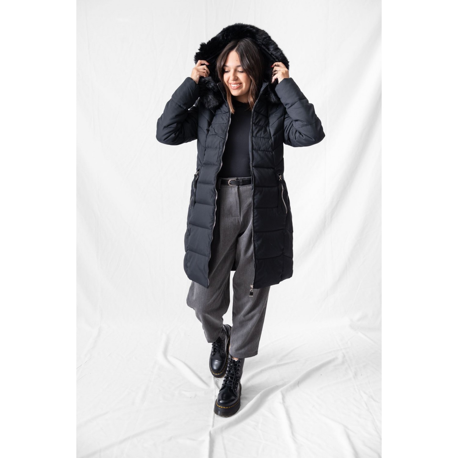 Long mid-length jacket with detachable hood and side pockets. Zipper closure and metal buttons. Jackets in the winter are absolutely essential for a complete outfit for a woman. Whatever style, pattern, color they have, they can be combined correctly and give a fantastic result! Ideal for rainy or very cold winter days, are long women's jackets. They can be combined with both tracksuits and leggings, as well as with the rest of your clothes .