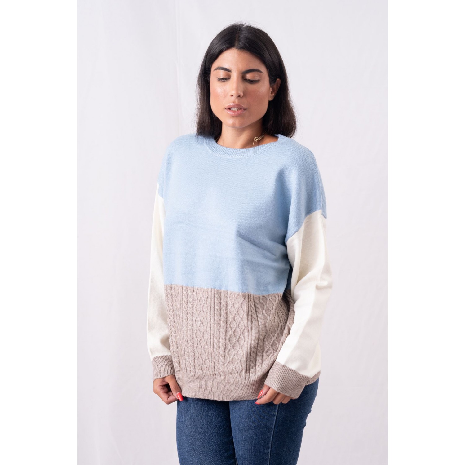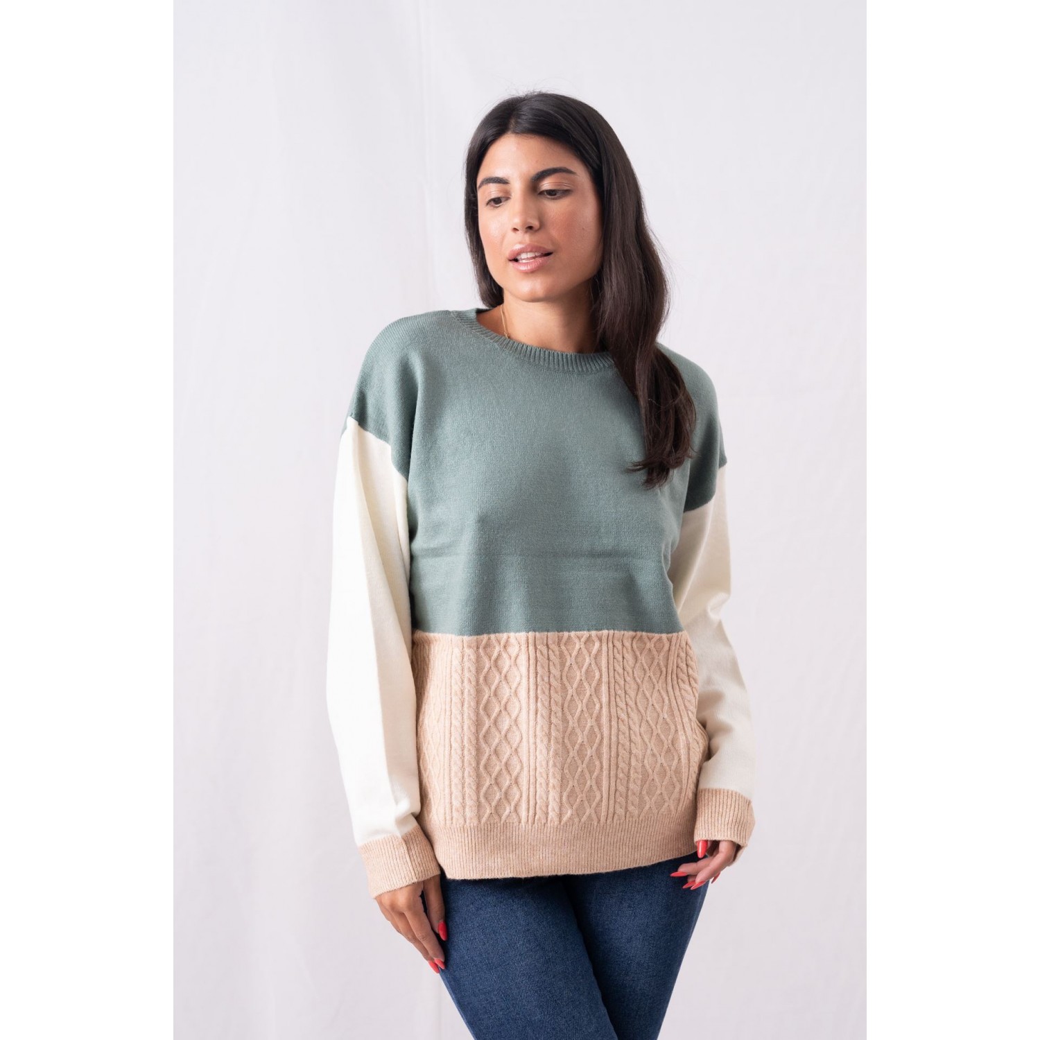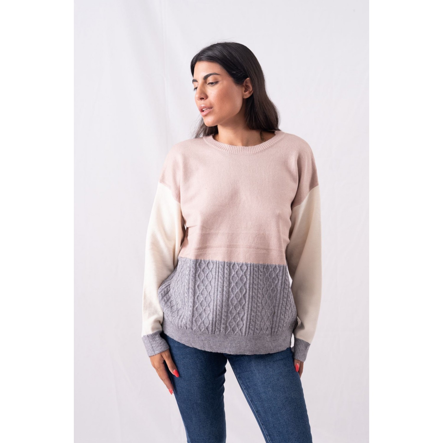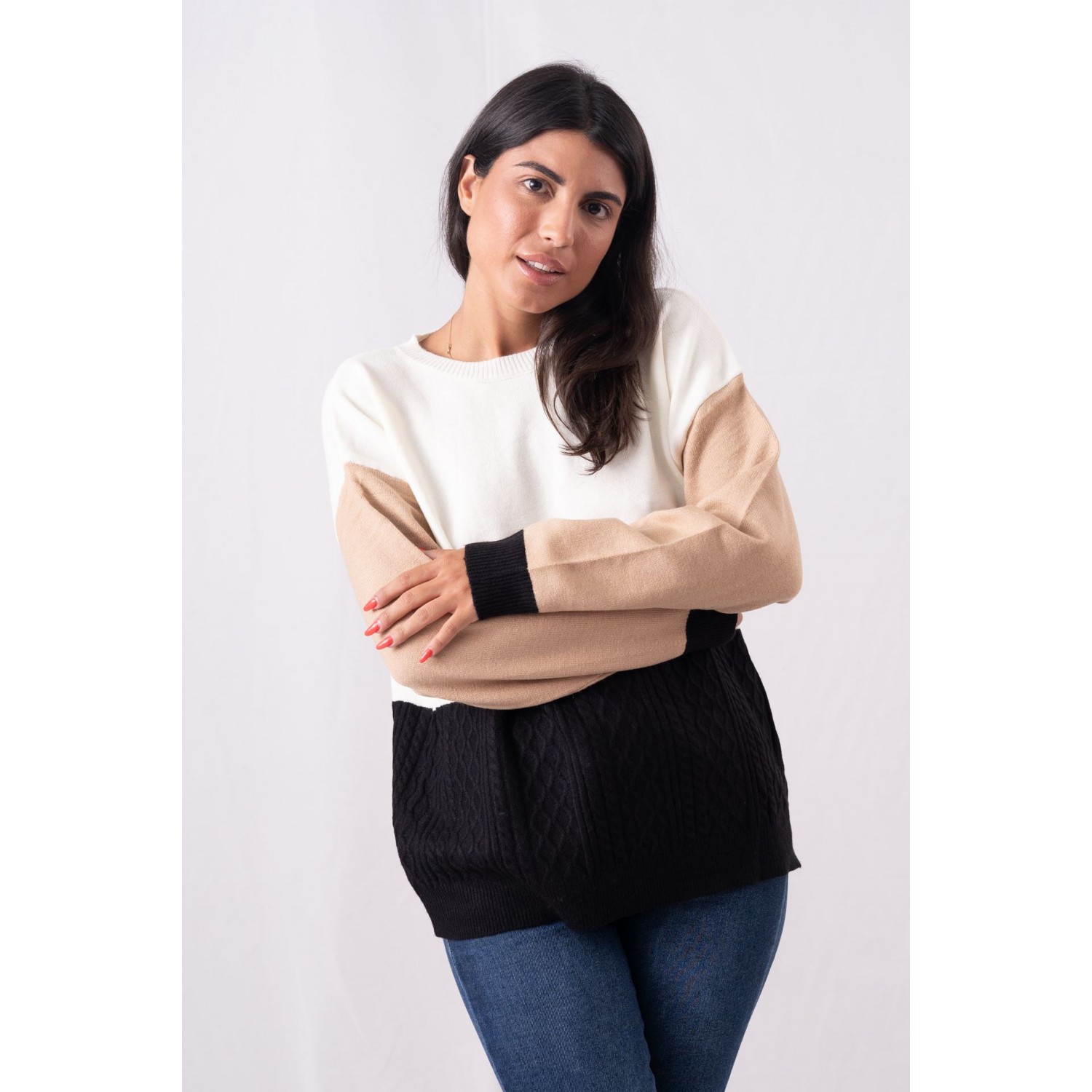 Πουλοβερ τρίχρωμο με λαιμόκοψη και σχέδιο πλέξης. Οι χειμωνιάτικες πλεκτές μπλούζες είναι απαραίτητες για το χειμώνα. Όχι μόνο θα σε κρατήσουν ζεστή και cosy, αλλά προσφέρουν ζεστασιά και στυλ σε κάθε σου εμφάνιση. Το απόλυτο γυναικείο ρούχο που θα συνδυάσεις με πλεκτή μπλούζα είναι το κολάν. Δεν υπάρχει πιο ωραίος, girly και ταυτόχρονα άνετος συνδυασμός από ένα κολάν μποτάκια και ένα μακρύ τύπου oversized πλεκτό μπλουζάκι από πάνω. Ποιος είπε ότι τα πλεκτα μπλουζάκια δε μπορούν να φορεθούν και στο γραφείο? Εμείς σου προτείνουμε να συνδυάσεις ένα πιο εφαρμοστό πλεκτό μπλουζάκι με πιο ελαφριά πλέξη, παντελόνι γραφείου σε ίσια γραμμή και μονόχρωμο γοβάκι για ένα μοντέρνο και πολύ συγχρονο office look.
