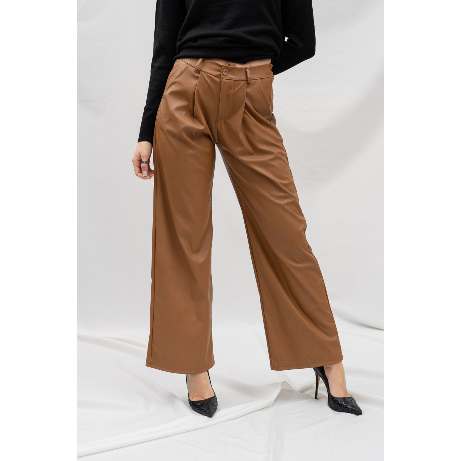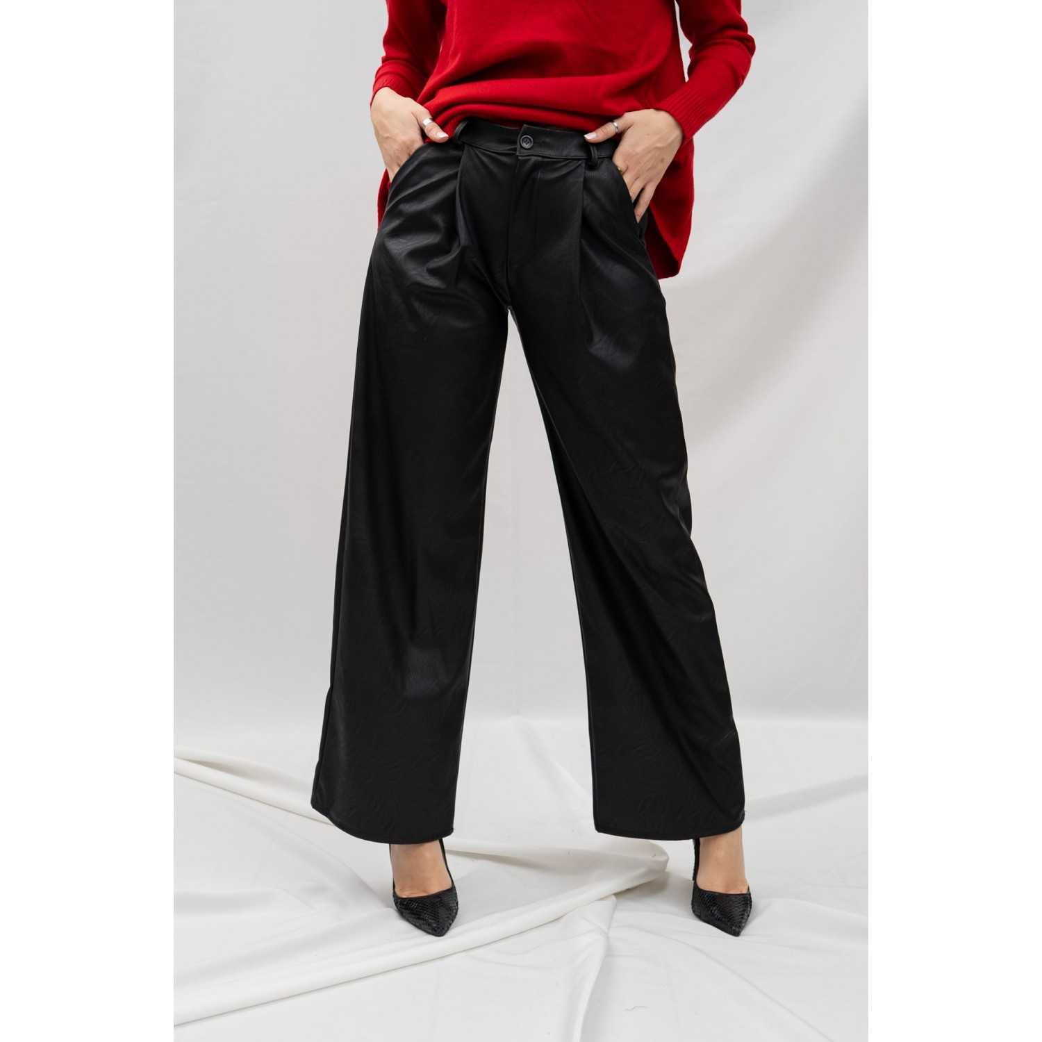 Leatherette trousers with pleats and side pockets. Zipper and button closure. The styling you can do with a leather pants has no limits. This year, you can wear it with both retro sneakers and chunky loafers that are a hot trend in footwear. Your jackets can be combined without limitation, even the leather ones that make up a leather suit.