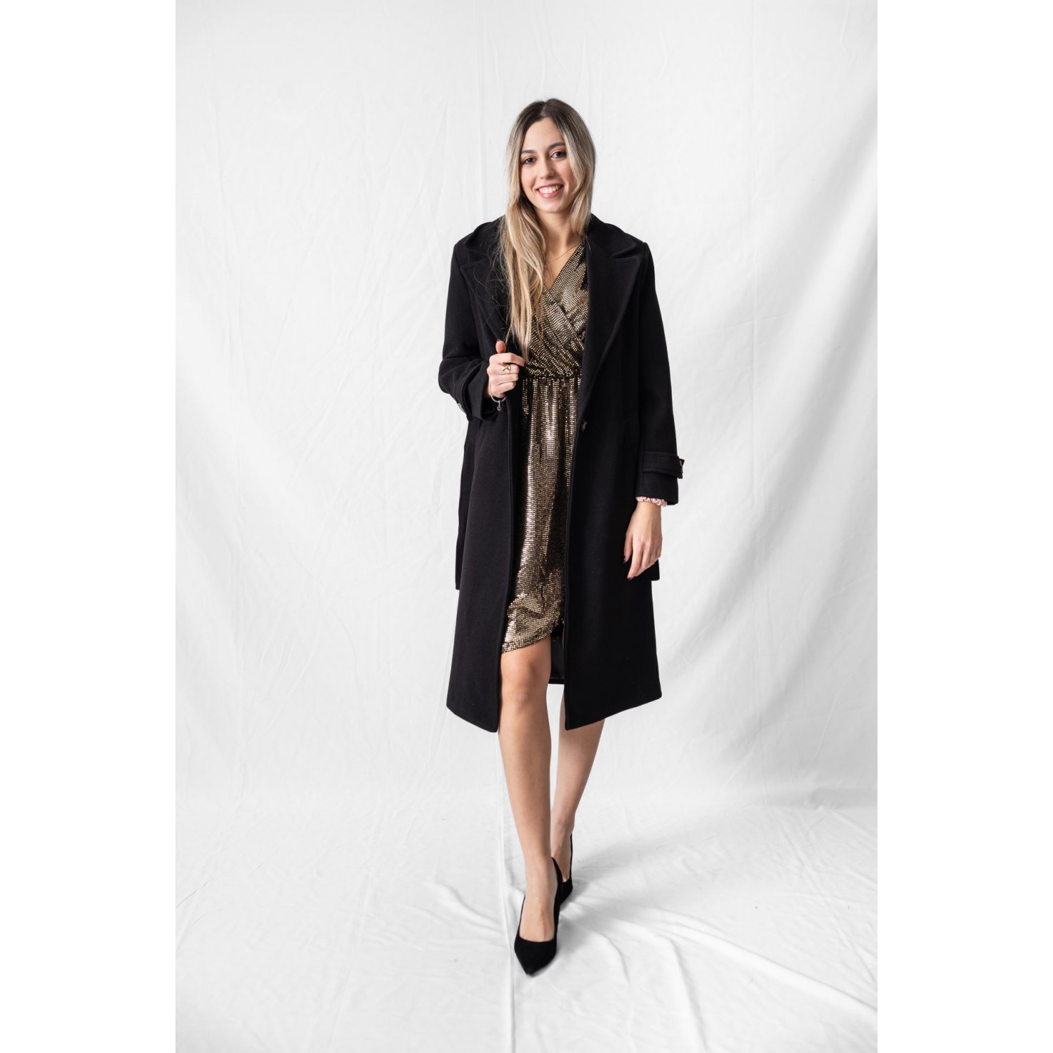 Long coat with a cross-fastening and a belt. It has side pockets. We know very well that the absolute must for winter is the outerwear. Whether it is a jacket, a jacket, a cardigan, a fur coat, a blazer, or a coat, outerwear is the warm embrace that saves us from the cold! At the same time, it is the final touch to our style. The coat, a piece that must definitely be in our wardrobe, is a piece that protects the female silhouette by highlighting it and not hiding it. It is also a garment that can be worn from the most formal to the most informal and casual occasions and always makes us look good. The most common way we wear a coat, especially for our daily obligations or our relaxed walks, is the coat with jeans. If you want to take your casual chic look to the next level, pair it with sneakers. A very wintery combination is that of a coat with a knitted turtleneck. If knitwear is your favorite warm clothing, imagine how it would look with a coat and possibly a pair of skinny pants.