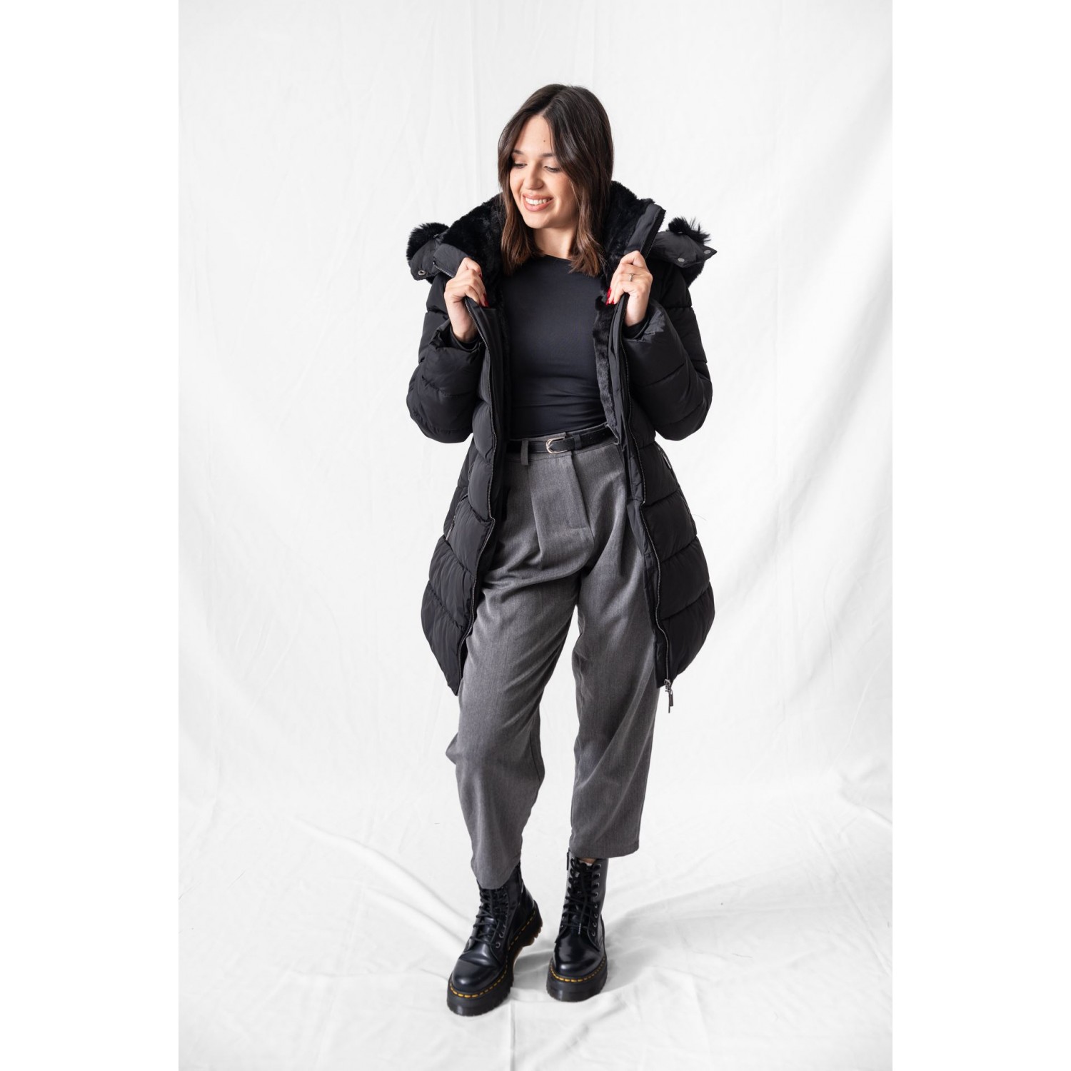 Long jacket with detachable hood and side pockets. It has inner fur up to the waist. Zipper closure and metal buttons. Jackets in the winter are absolutely essential for a complete outfit for a woman. Whatever style, pattern, color they have, they can be combined correctly and give a fantastic result! Ideal for rainy or very cold winter days, are long women's jackets. They can be combined with both tracksuits and leggings, as well as with the rest of your clothes .
