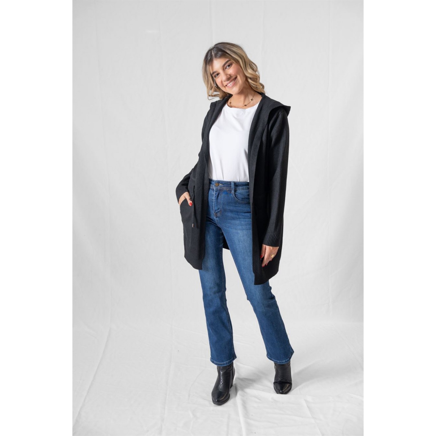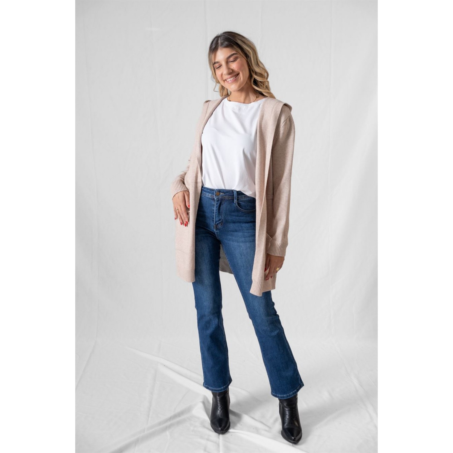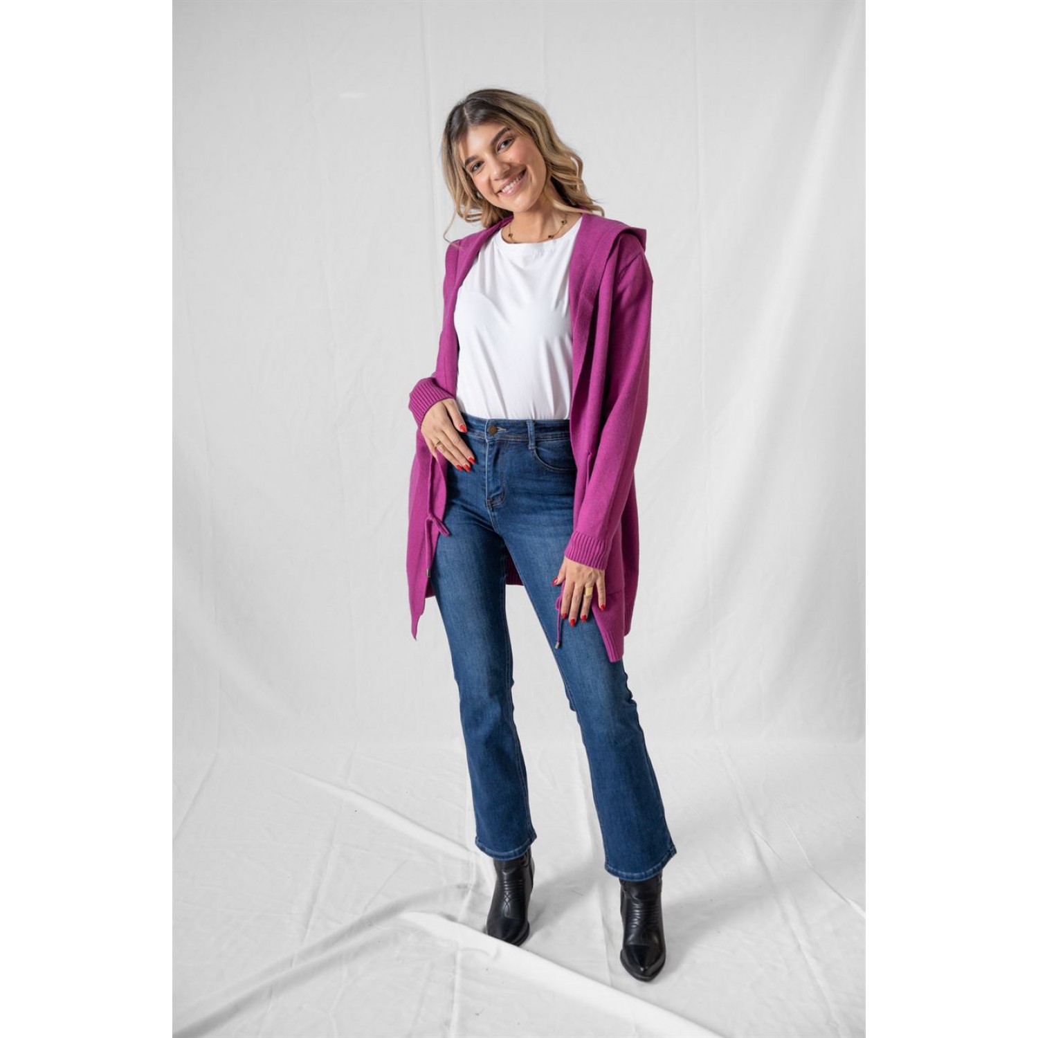 Long cardigan with hood and adjustable belt. It has side pockets. There is no cozier feeling in winter than a knitted cardigan that hugs our body. It is also a piece that we can treat as a lining, just like our coat, because we can really wear it in countless ways. Many times, we use the cardigan for layering inside our coat. Street style has proven to us that cardigans are now super cool and not just a practical solution for the cold. The most classic combination is the cardigan over a shirt or top, as an extra layer that also gives style to our appearance. Of course, there are also knitted sets that are our coziest choice.