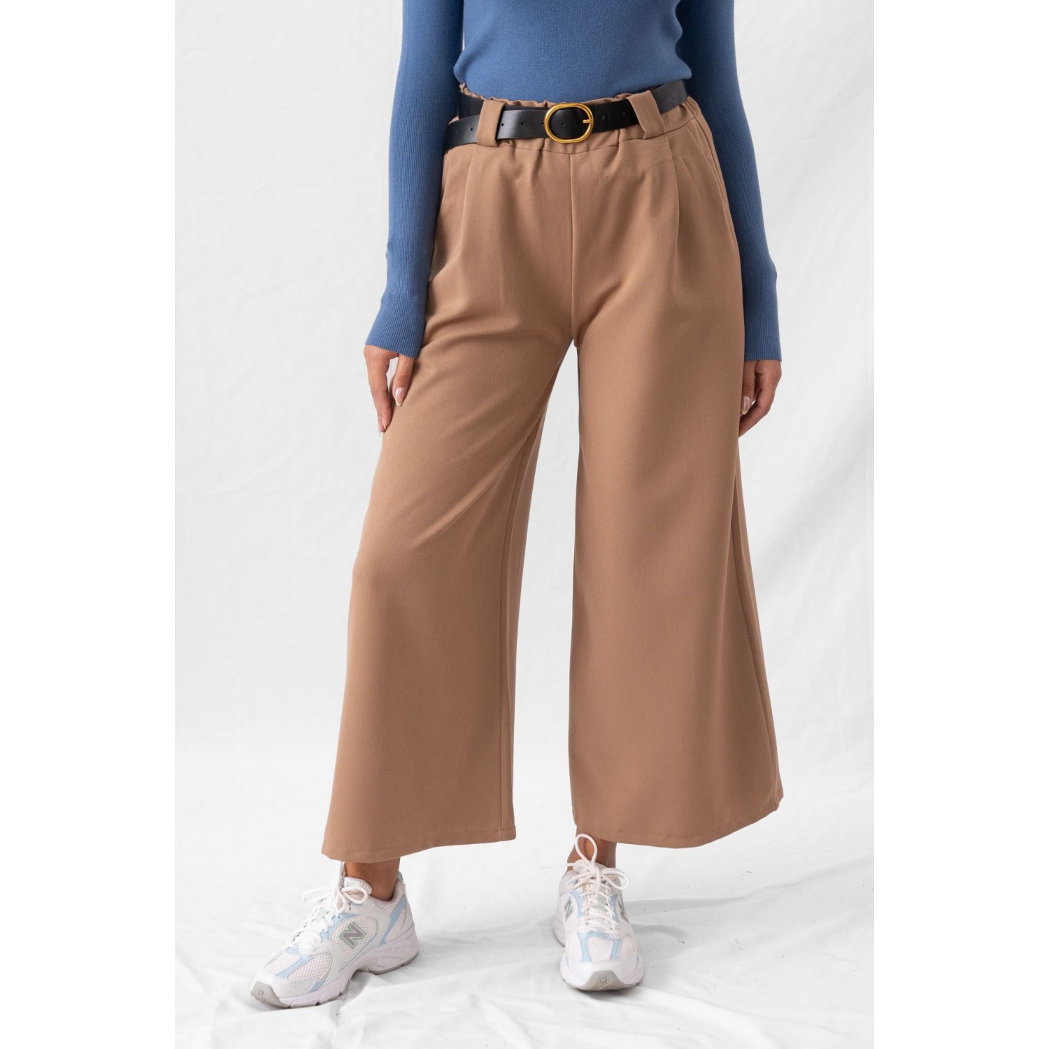 Trousers with elastic and belt. They are comfortable, they are chic, they are ideal for both every day and special occasions: trousers should belong to every woman's collection, regardless of age and style. Trousers are the ideal garment to show off a great top. Their high waist emphasizes the combination you will make and fortunately there are many options that match the trousers. A very chic way to wear your trousers, the sweatshirt that is tucked in the front will give shape to the silhouette and emphasize the waist. Add a belt and it will look perfect! With lingerie top and jacket : A satin top, with lace and thin straps, goes great with flared pants! Throw in an oversized blazer too on your shoulders to complete the look and you're ready! With a crop top : The wider and higher-waisted the pants, the easier it can be combined with a crop top, especially a tight one. Whether it's summer and you choose a strappy crop top, or the weather still calls for long sleeves, the combination "wide pants - tight blouse" is definitely irresistible.