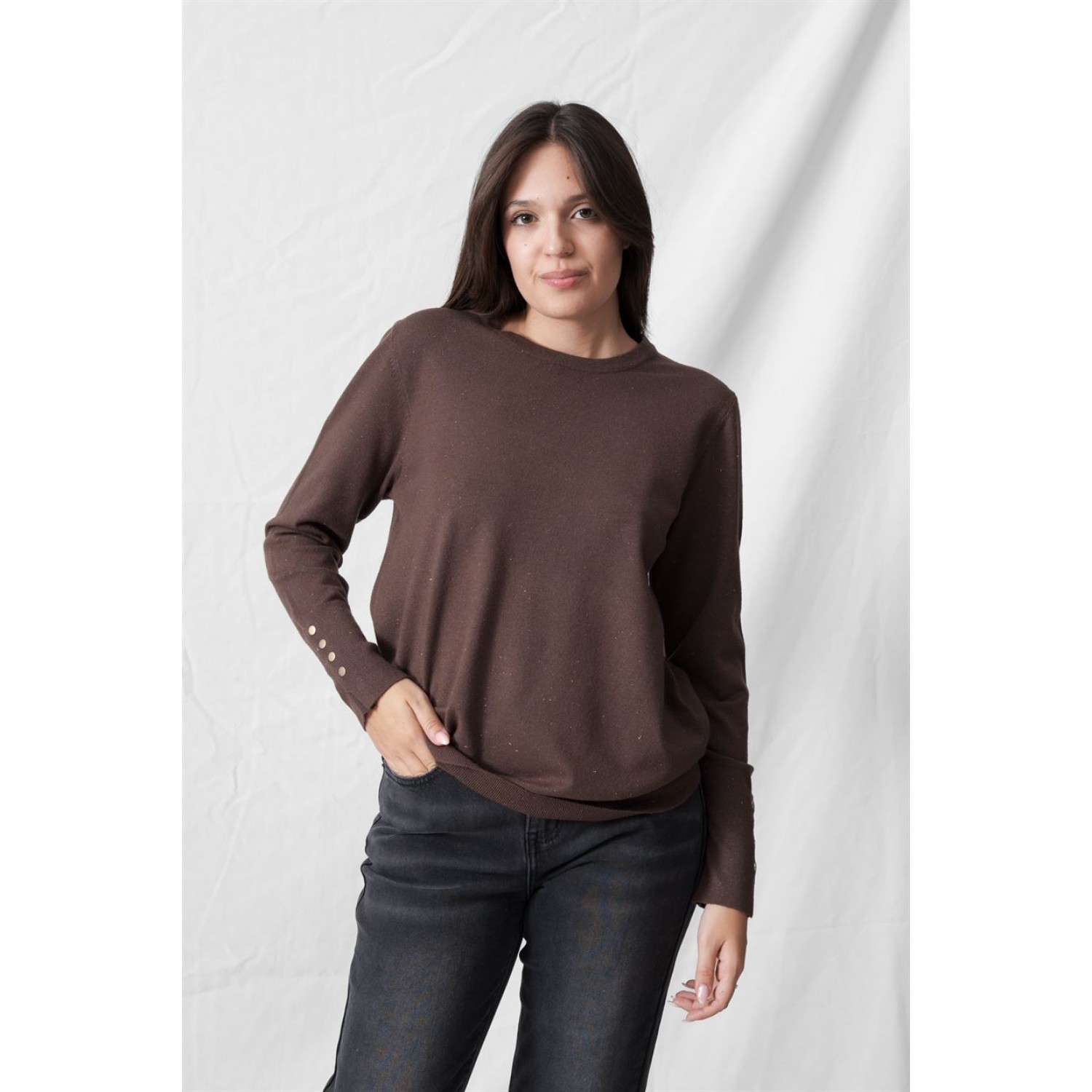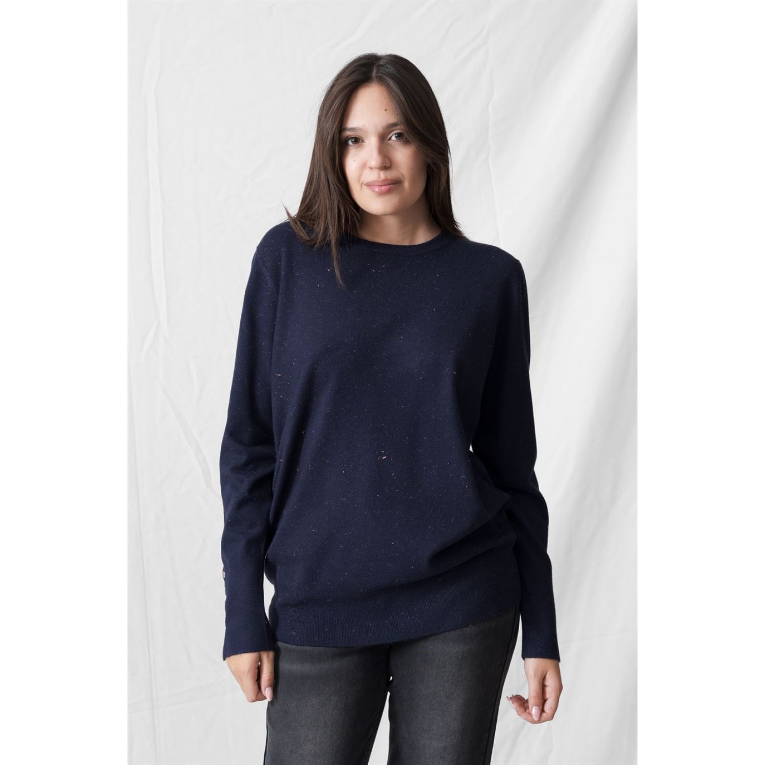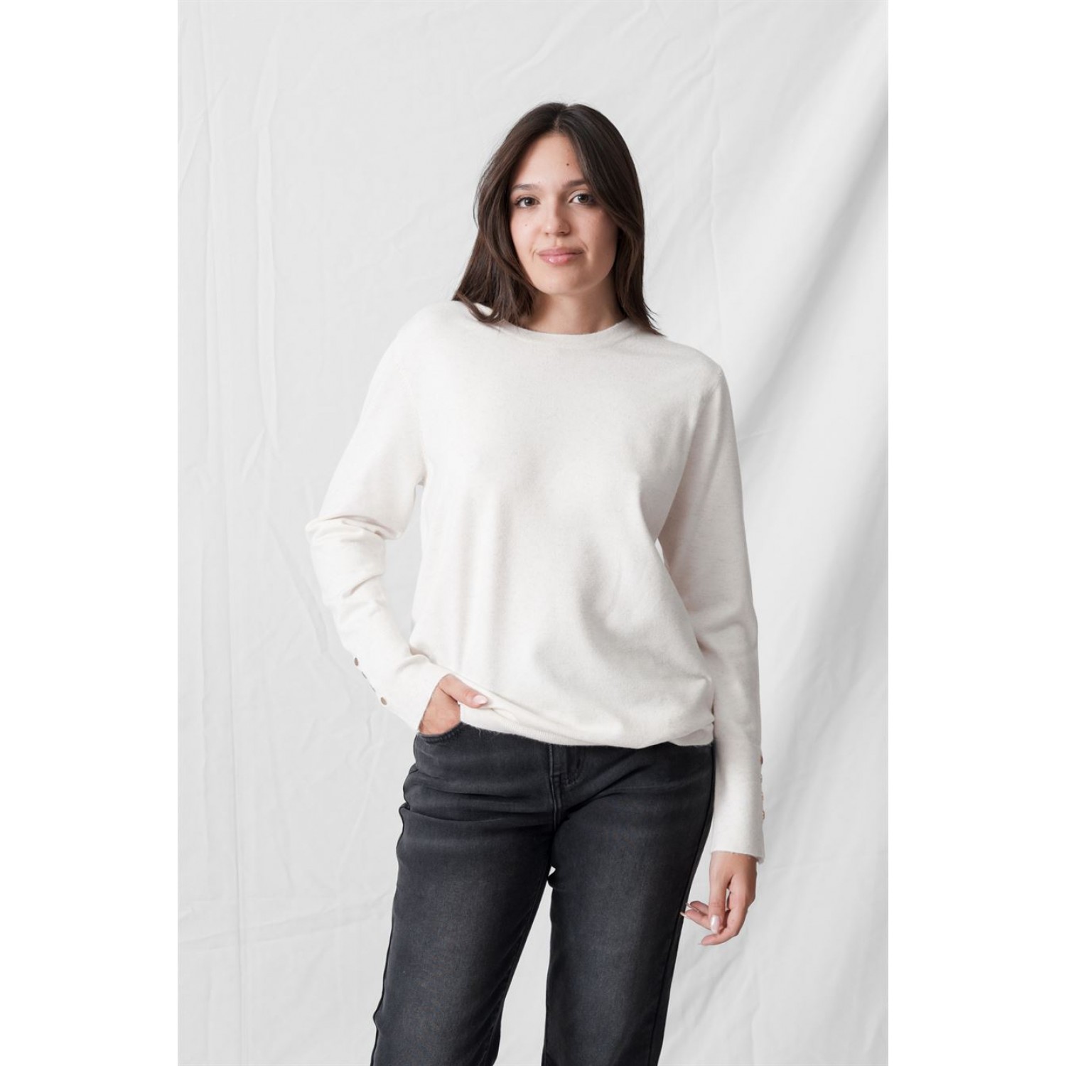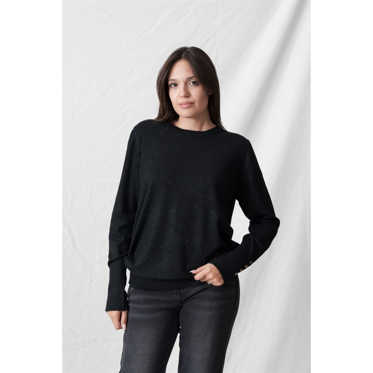 Πουλόβερ με λαιμόκοψη και κουμπιά μεταλλικά στα μανίκια. Ένα από τα ζεστά ρούχα που αγαπάμε πολύ το Φθινόπωρο / Χειμώνα, δεν είναι άλλο από το πουλόβερ. Η διάθεση που λαμβάνουμε από το street style για το πουλόβερ, επιβεβαιώνει το versatility του. Υπάρχουν οι σταθερές αξίες (ζιβάγκο, cable-knit πλεκτά), οι οποίες, όμως, «αναγεννιούνται» μέσα από oversized σιλουέτες και bold αποχρώσεις. Αν τα συνδυάσεις όλα αυτά, λοιπόν, με υπόλοιπα κλασικά κομμάτια της γκαρνταρόμπας, τότε δεν μπορείς πάρα να δημιουργήσεις σύνολα για διαφορετικές περιστάσεις κάθε φορά. Ενέδωσε σε κλασικούς συνδυασμούς ρούχων, που είναι ιδανικοί για τα looks του γραφείου. Πρόσφερε ένα twist σε αυτά, συνδυάζοντας, για πχ ένα πουλόβερ με cut outs με ένα ψηλόμεσο υφασμάτινο παντελόνι. Ολοκλήρωσε με αξεσουάρ για ένα πιο ενδιαφέρον αποτέλεσμα.
