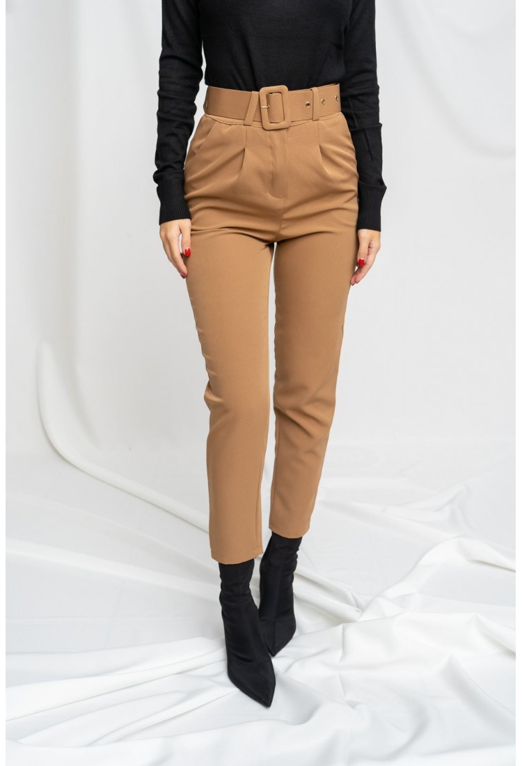 High-waisted pants with belt and pleats. Zipper and button closure. Here, match your pants with a top, shirt or blouse. If you have chosen a baggy pants with pleats, make sure the top does not cover the belt of the pants. If you are cold, wear a mid-length jacket, a coat with special details or a faux fur. As for shoes, stilettos, ankle boots, peep toes, pumps, they challenge you to choose to highlight your femininity.