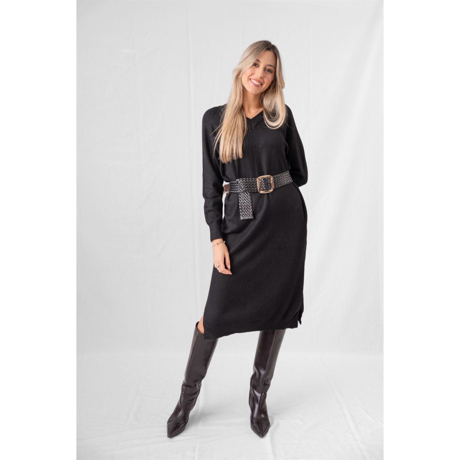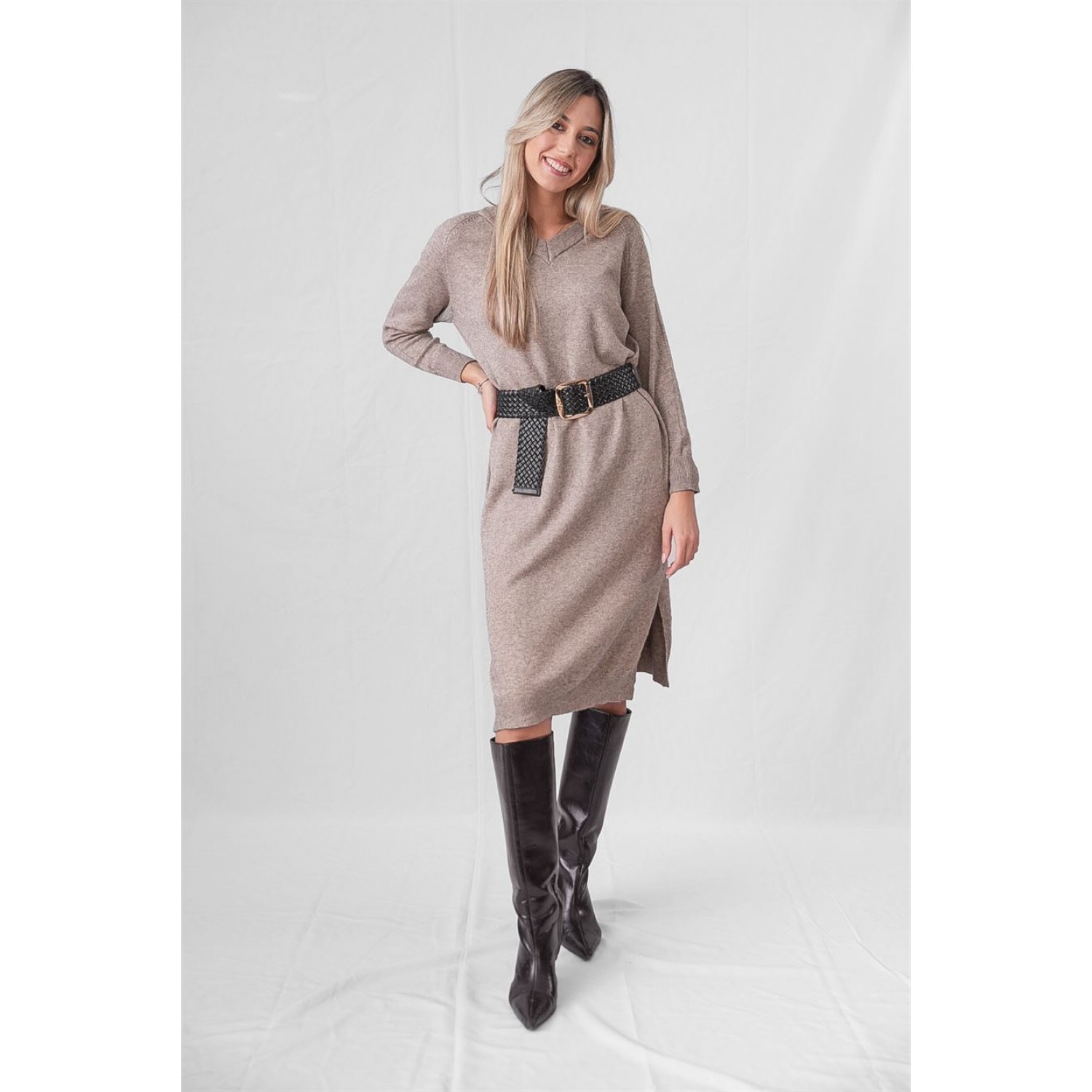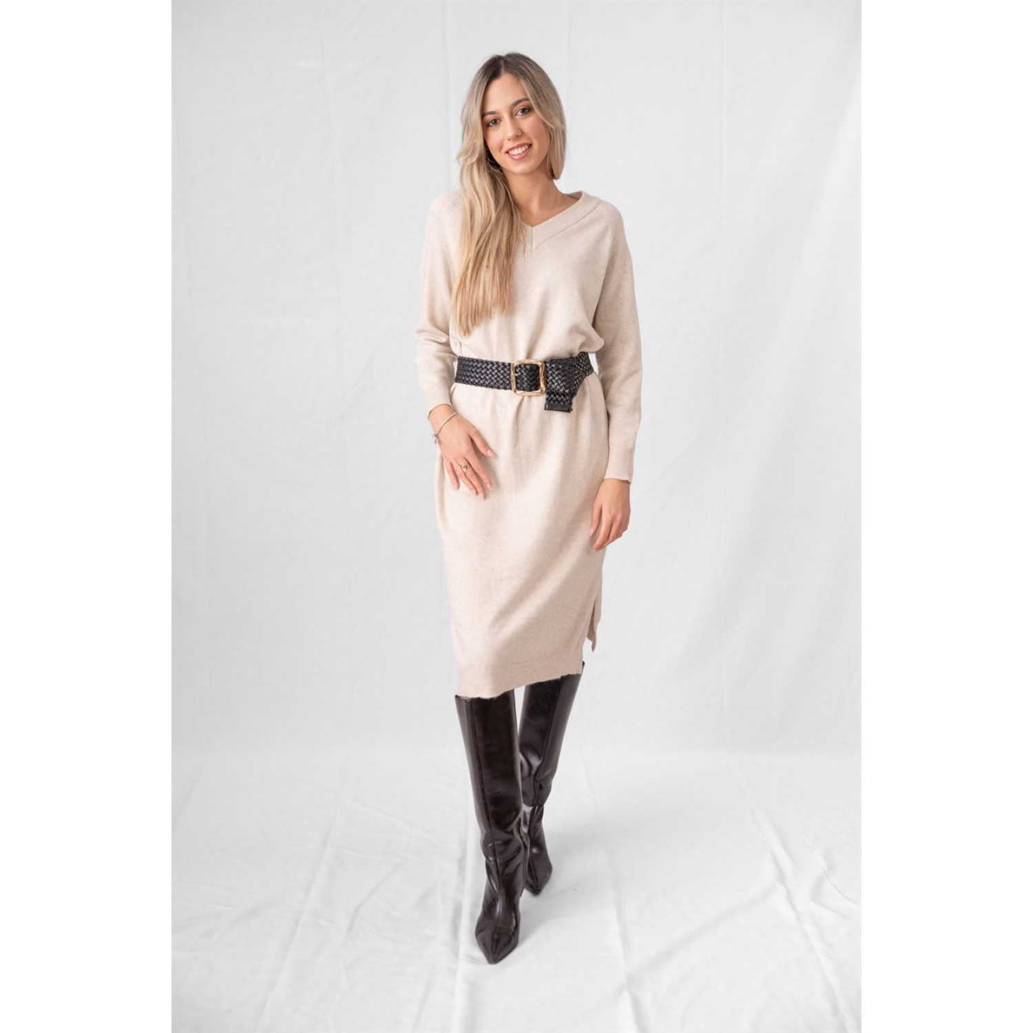 Knitted dress with V-neckline and side openings. First in the category of key-items of each season are dresses . Comfortable, practical, versatile and with a unique style, they occupy an important place in the wardrobe of every woman, regardless of age and character. They help us create successful outfits, without having to make a special effort. One of the essentials of the winter collection is, without a second thought, knitted dresses. Absolutely fashionable, they have the ability to stand out in all circumstances and keep us warm on cold days. Ideal choice for mornings at the office, even for those days when you have difficulty finding what to wear. Neutral shades, such as beige, gray and brown, will offer harmony and the ideal minimal style. We suggest you create an elegant and all time classic ensemble, combining your dress with leather boots. Plus, a designer bag will give extra points to your image. Oversized blazers have become one of the favorite pieces of every fashionista this year that is difficult to part with. It has multiple uses and one of them can be with your knitted dress. Combine shades that will offer harmony, such as white with beige. As for shoes, a pair of loafers can accompany you from morning to night. Complete with a maxi, statement coat for style but also for the necessary temperature.