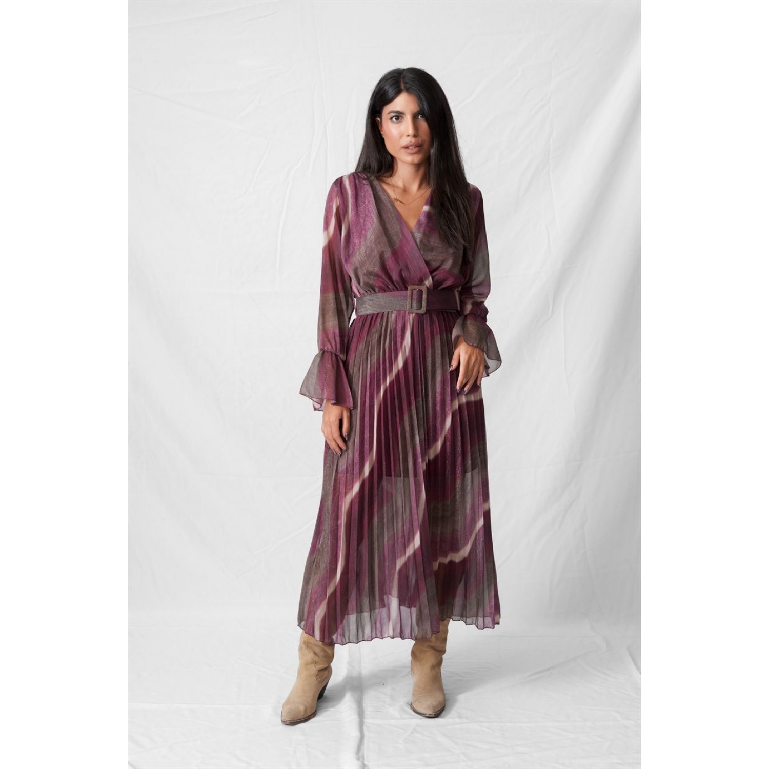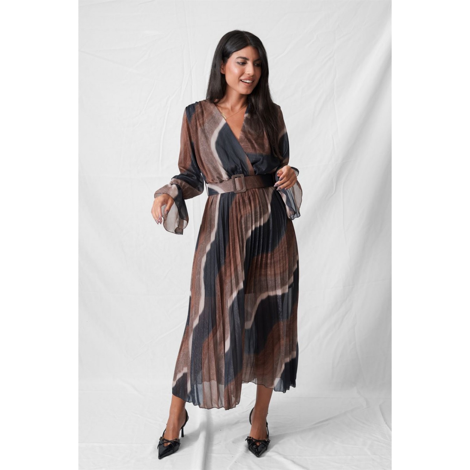 Φόρεμα εμπριμέ με χρυσοκλωστή και V ντεκολτέ. Διαθέτει λάστιχο στη μέση και ζώνη που ρυθμίζεται. Αν αναζητάτε το ιδανικό φόρεμα για το φθινόπωρο;..