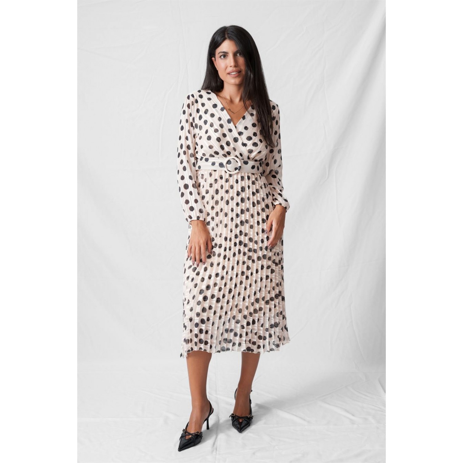 Φόρεμα πουά με χρυσοκλωστή και V ντεκολτέ. Διαθέτει λάστιχο στη μέση και ζώνη που ρυθμίζεται. Ρετρό, θηλυκό και απίστευτα κομψό, το πουά φόρεμα επιστρέφει δυναμικά φέτος και υπόσχεται να γίνει το απόλυτο go-to κομμάτι για κάθε περίσταση. Από τις πασαρέλες μέχρι το street style, τα polka dot prints αποδεικνύουν ότι η κλασική γοητεία δεν φεύγει ποτέ από τη μόδα. Το πουά μοτίβο συνδυάζει νοσταλγία και μοντέρνο χαρακτήρα, χαρίζοντας μια chic, effortless αισθητική σε κάθε outfit. Είτε επιλέξεις ένα αέρινο midi φόρεμα με διακριτικά πουά είτε ένα πιο statement σχέδιο με oversized dots, θα πετύχεις έναν elegant και διαχρονικό συνδυασμό που αποπνέει φινέτσα.