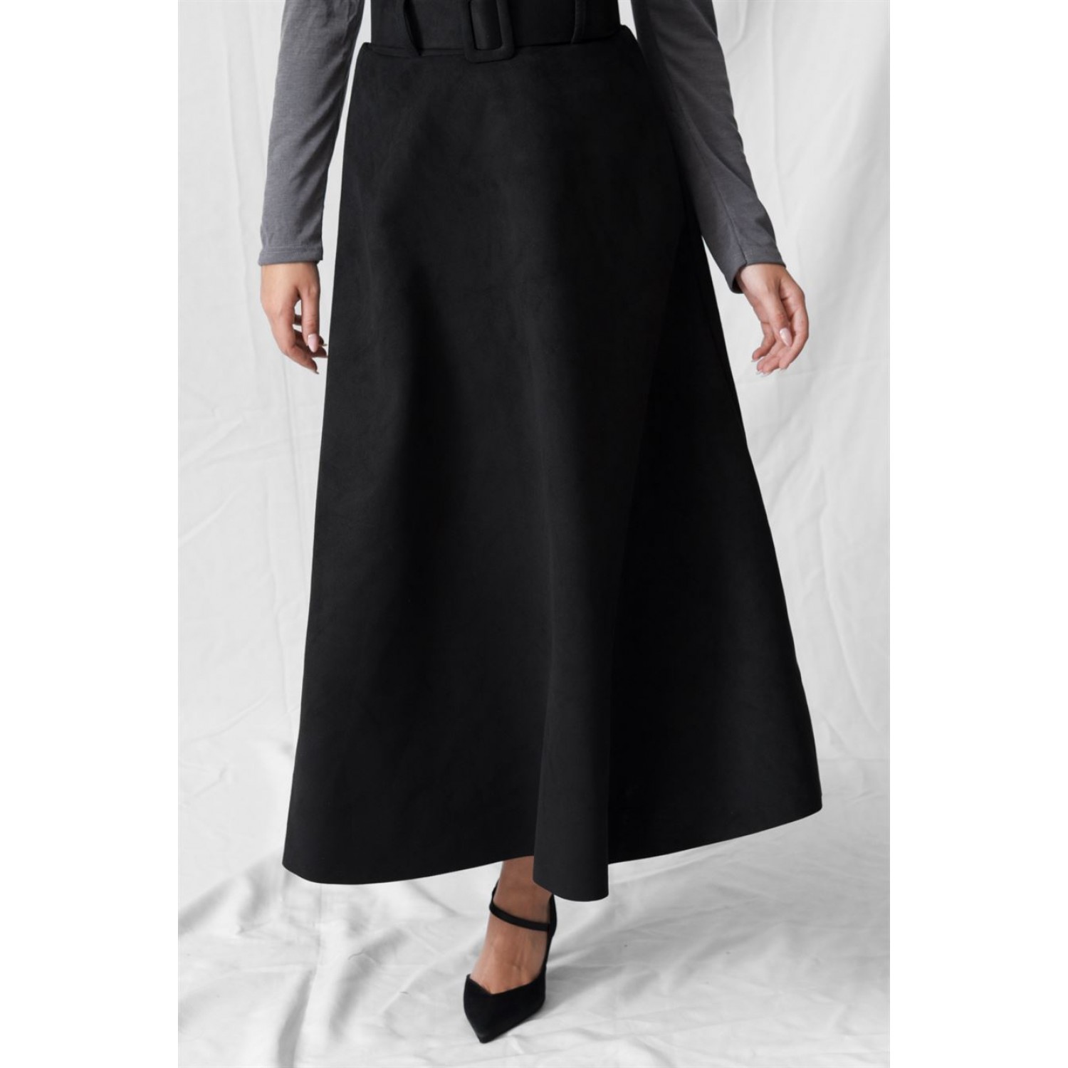 Φούστα σουέτ με λάστιχο στη μέση και ζώνη που ρυθμίζεται . Για να συνδυάσεις μια φούστα σουέντ, φόρεσε ένα πλεκτό τοπ, είτε cropped είτε μακρύτερ..