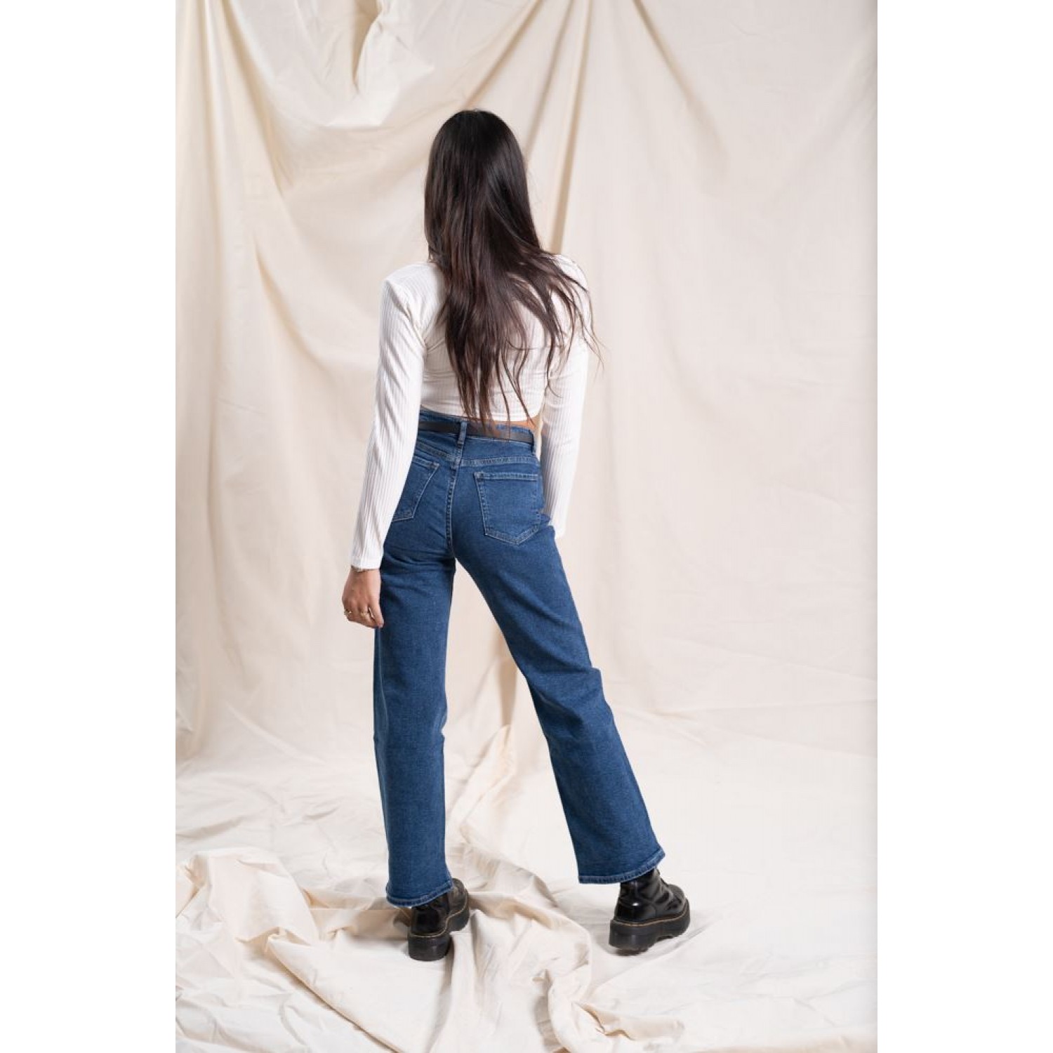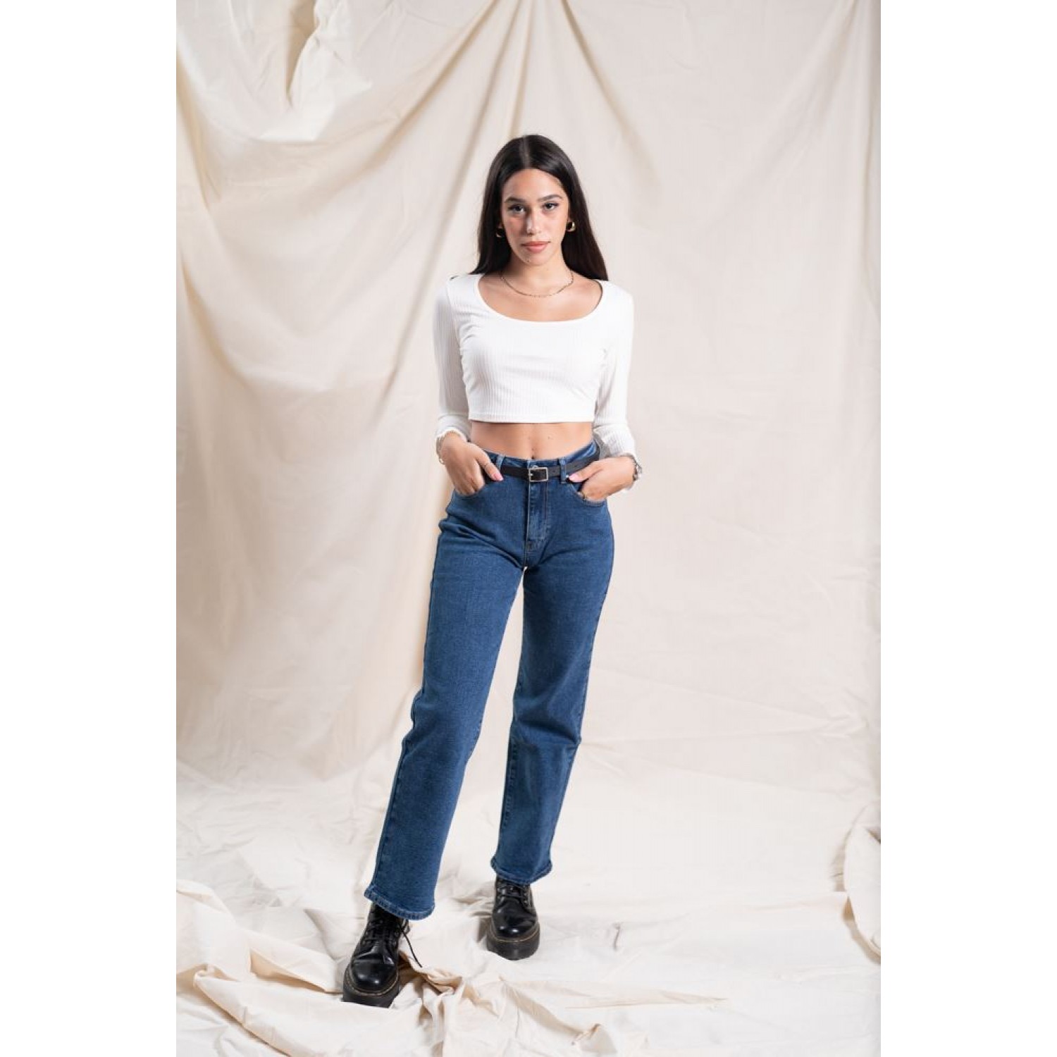 Τζιν σε ίσια γραμμή με φερμουάρ και μεταλλικό κουμπί. Έχει ζώνη που ρυθμίζεται. Μπορείς να το φορέσεις από το πρωί μέχρι το βράδυ. Επιτρέπει τους περισσότερους συνδυασμούς σε σύγκριση με τα υπόλοιπα τζιν και κάθε παπούτσι επίσης!