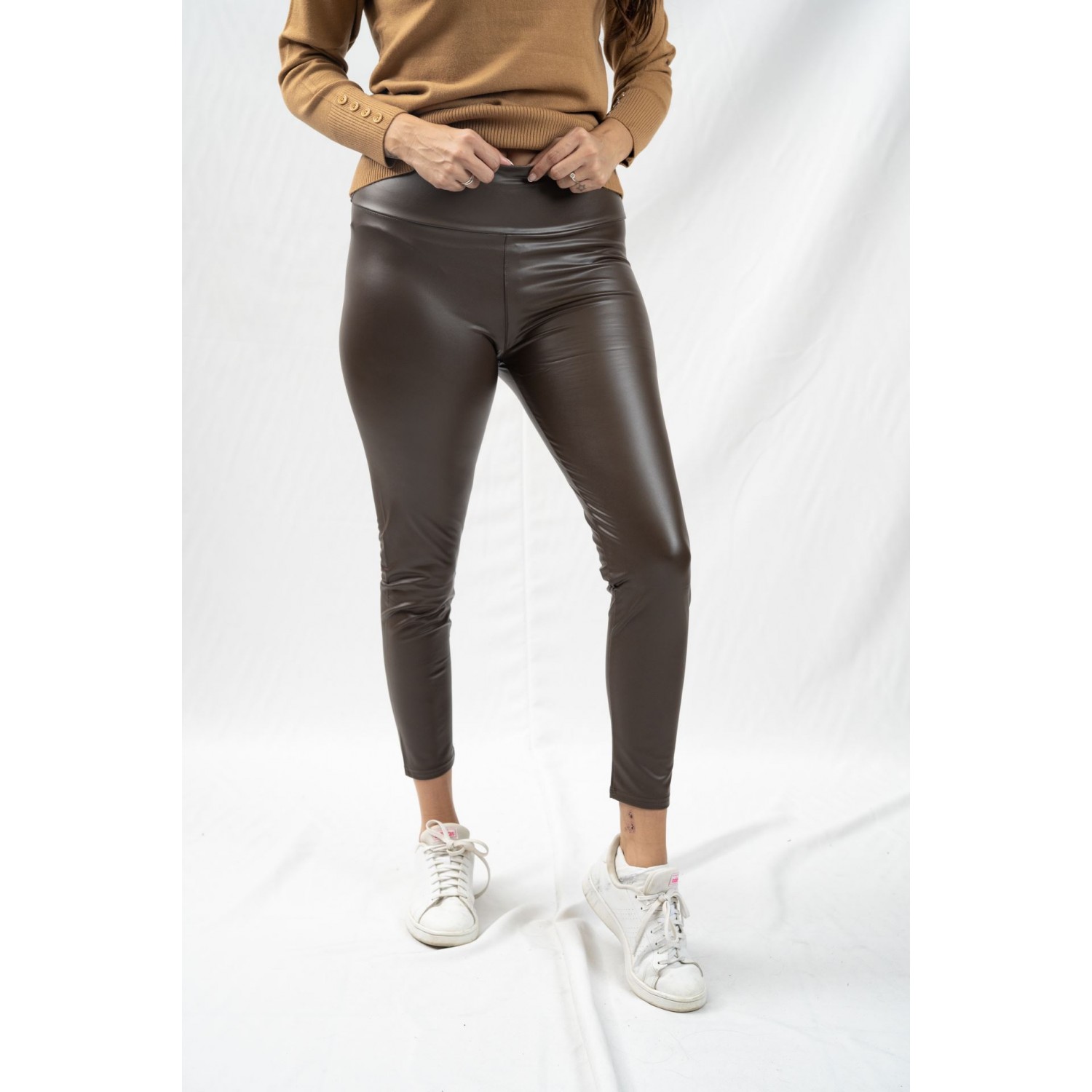 Κολάν δερματίνη με λάστιχο στη μέση. H δερματίνη, είναι μια υφή που κάνει το δερμάτινο κολάν να μοιάζει περισσότερο με παντελόνι και όχι με κολάν. Για αυτό και είναι ένα από τα κομμάτια που βρίσκονται σε κάθε γυναικεία γκαρνταρόμπα για το φθινόπωρο και το χειμώνα. Έτσι, μπορούμε άνετα να το συνδυάσουμε με κομψά κομμάτια και να το φορέσουμε παντού, κατά τη διάρκεια της ημέρας στο γραφείο, αλλά και το βράδυ, σε εξόδους και ραντεβού. Με μπότες και μποτάκια, με sneakers και με γόβες, με crop top και σακάκι, με ζιβάγκο και γιλέκο, με ζακέτες και aviator jackets, με παλτό και καπαρντίνες. Δεν υπάρχει κάτι στην ντουλάπα σου που να μην μπορείς να συνδυάσεις με το δερμάτινο κολάν.