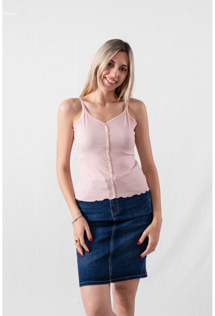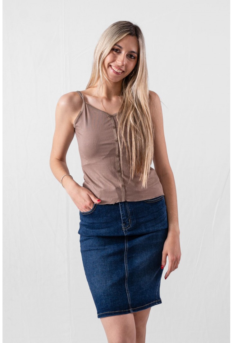 Τζιν σε ίσια γραμμή με διακοσμητικά κουμπιά. Κλείσιμο με φερμουάρ και μεταλλικό κουμπί. Ένα κόμματι, από την γκαρνταρόμπα μας, που δεν πρόκειται ..