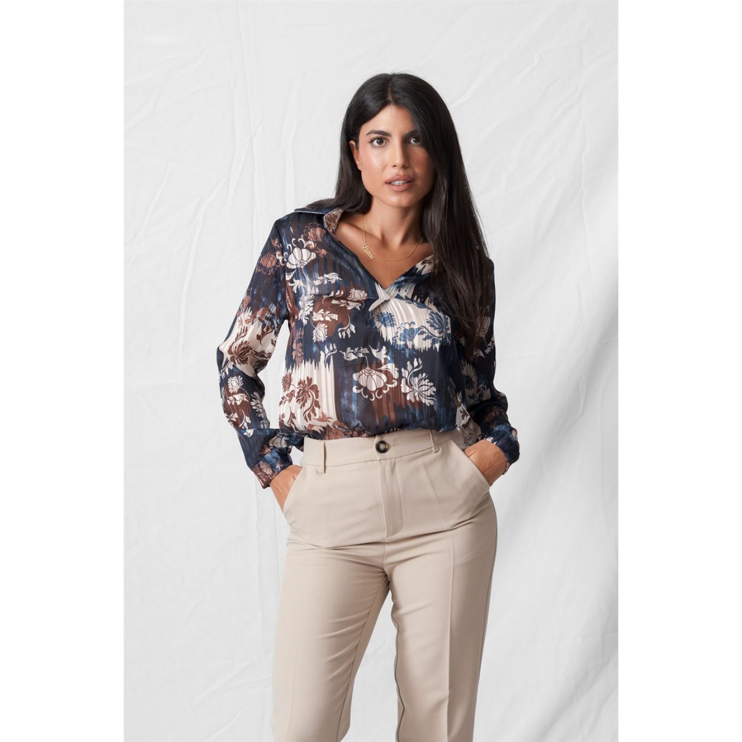 Πουκάμισο με χρυσοκλωστή και δέσιμο στο λαιμό. Τα πουκάμισα με prints έχουν μια απίστευτη ιδιότητα. Εκτός από το να κάνουν πιo bold τις..