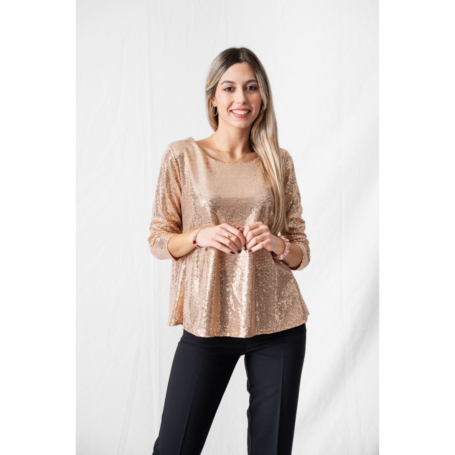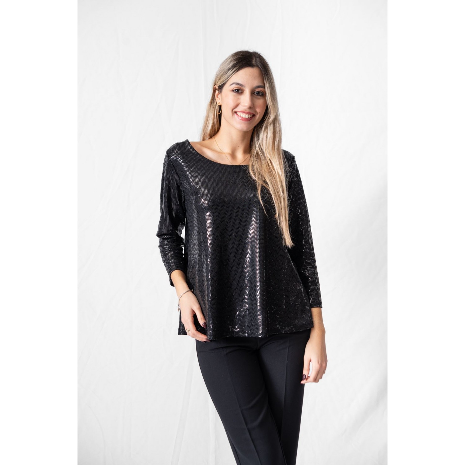 Μπλούζα παγιέτα με λαιμόκοψη. Οι παγιέτες σε κάνουν να λάμπεις, να νιώθεις ιδιαίτερη και να τραβάς όλα τα βλέμματα επάνω σου, οπότε όταν τις δοκιμάσεις, μετά πολύ απλά τις λατρεύεις. Ειδικά τώρα στις γιορτές, μπορείς άνετα να τις φορέσεις και να κάνεις με μία κίνηση εορταστικό το σύνολο σου. Mία μπλούζα με παγιέτες συνδυάζεται με mini φούστα και διάφανο καλσόν σε festy look. Για ένα πρωινό λουκ συνδύασε τη μπλούζα παγιέτα με ένα παντελόνι γραφείου.