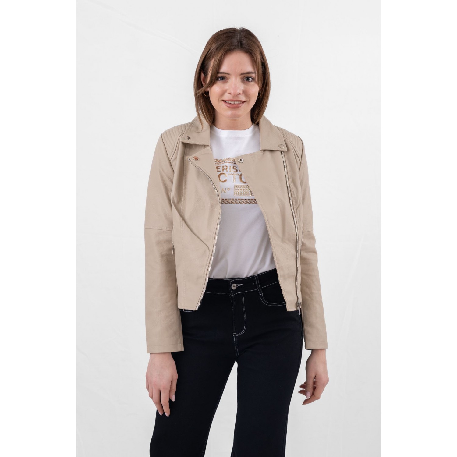 Jacket δερματίνη με πλαϊνές τσέπες και κλείσιμο στο πλάϊ με φερμουάρ. Διαχρονικό και εύκολο να συνδυαστεί, το δερμάτινο μπουφάν αποτελεί ένα από τα πιο απαραίτητα πανωφόρια για μια γυναίκα. Είναι ζεστό και προσθέτει στυλ σε κάθε ντύσιμο! Ένα biker jacket ταιριάζει με κάθε είδος παντελονιού. Τολμήστε λοιπόν να δημιουργήσετε όμορφα casual σπορ ντυσίματα με ένα κολάν ή ένα παντελόνι φόρμας, συνδυάζοντας τα με ένα απλό t-shirt και τα sneakers σας.