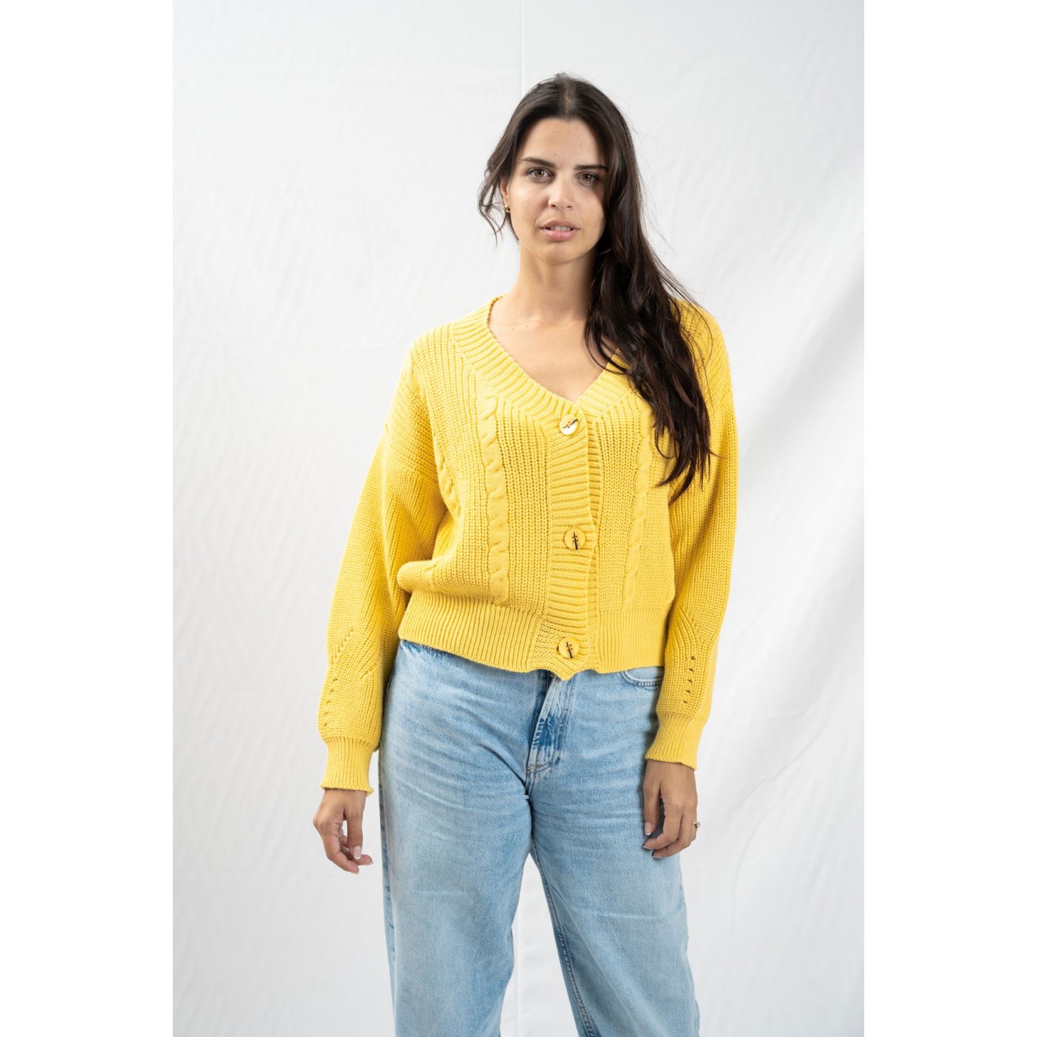 Πλεκτή ζακέτα με κουμπιά. Οι πλεκτές ζακέτες είναι σίγουρα το κομμάτι που φοράμε καθημερινά το φθινόπωρο και το χειμώνα. Μας τυλίγει με τη ζεστασιά της, ενώ είναι τόσο άνετη και cosy που γίνεται η βάση για τα ωραιότερα casual street style μας. Ταιριάζει εκπληκτικά τόσο με παντελόνι, όσο και με φούστα, δημιουργώντας σύνολα για κάθε ώρα της ημέρας. Φόρεσε λοιπόν μια crop cardigan ως τοπ και συνδύασε τη με ένα baggy jeans. Το συγκεκριμένο look είναι πάρα πολύ trendy. Αν πάλι δεν σου αρέσουν τα φαρδιά παντελόνια, μπορείς και πάλι να την βάλεις με κάποιο πιο στενό.