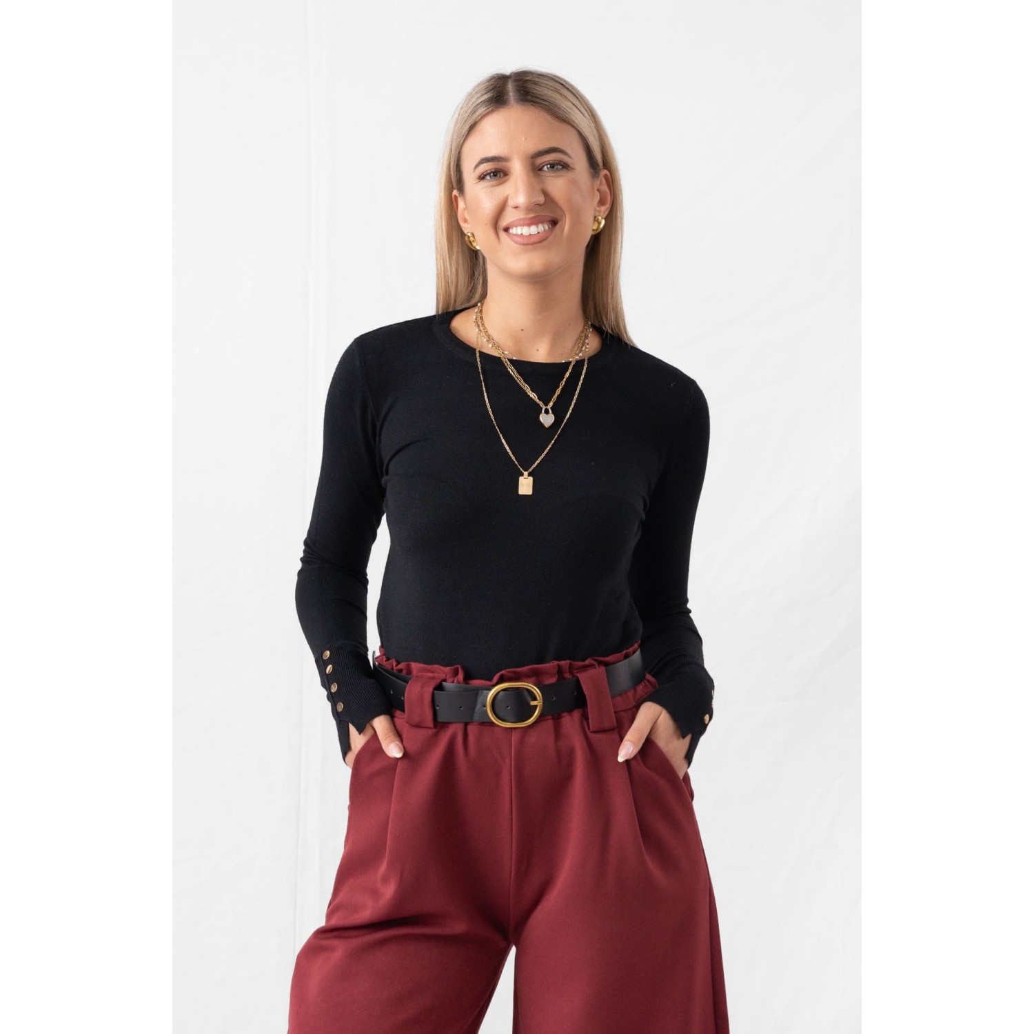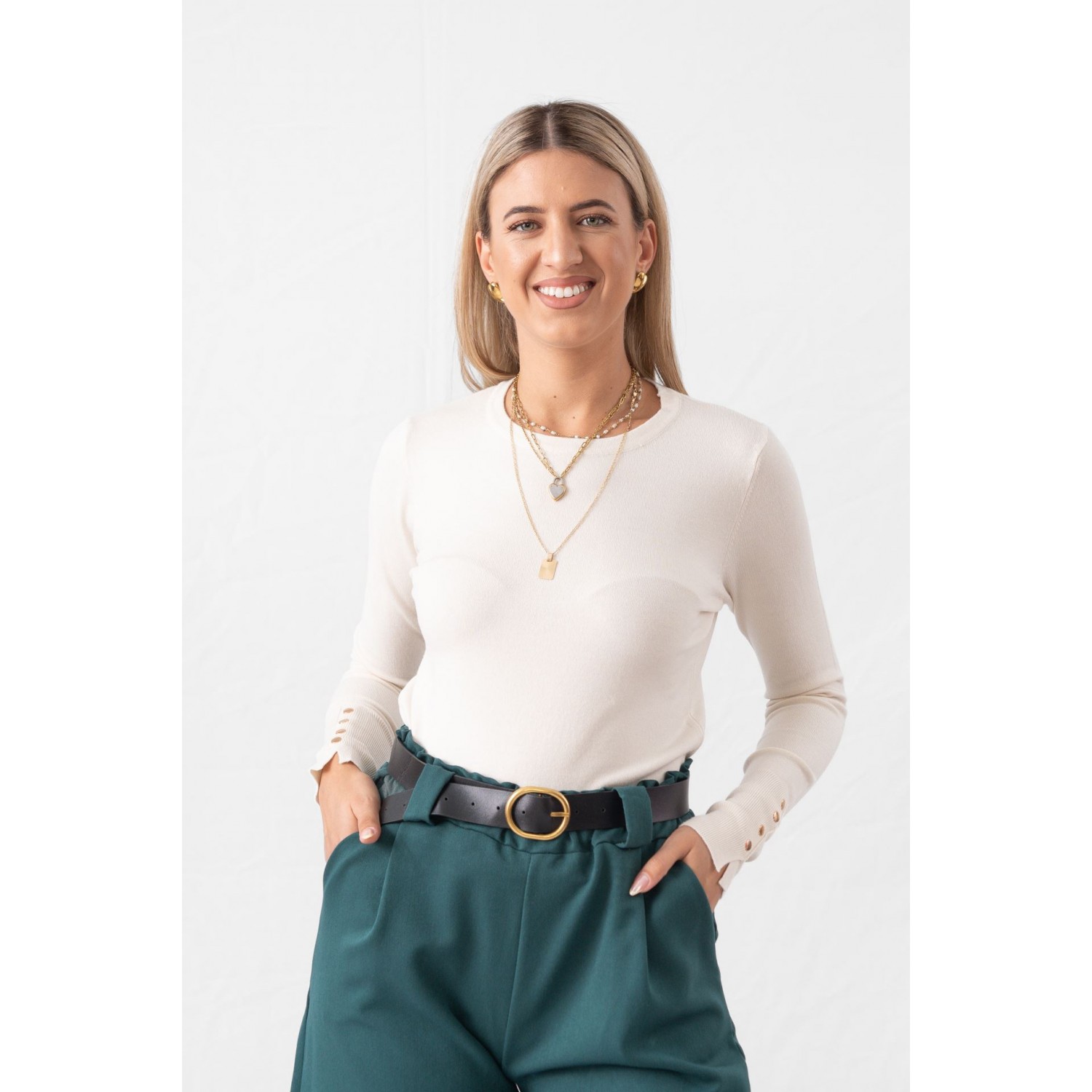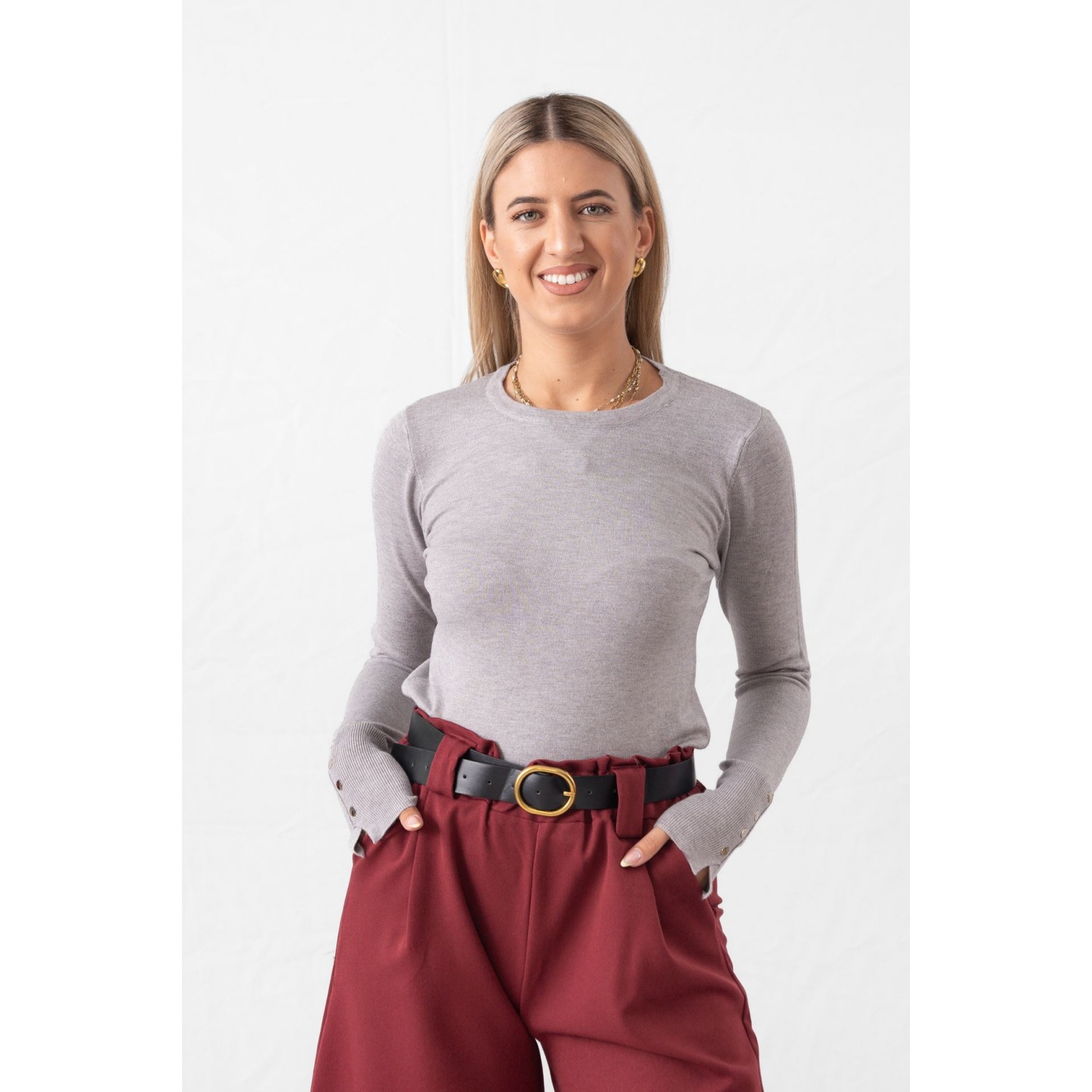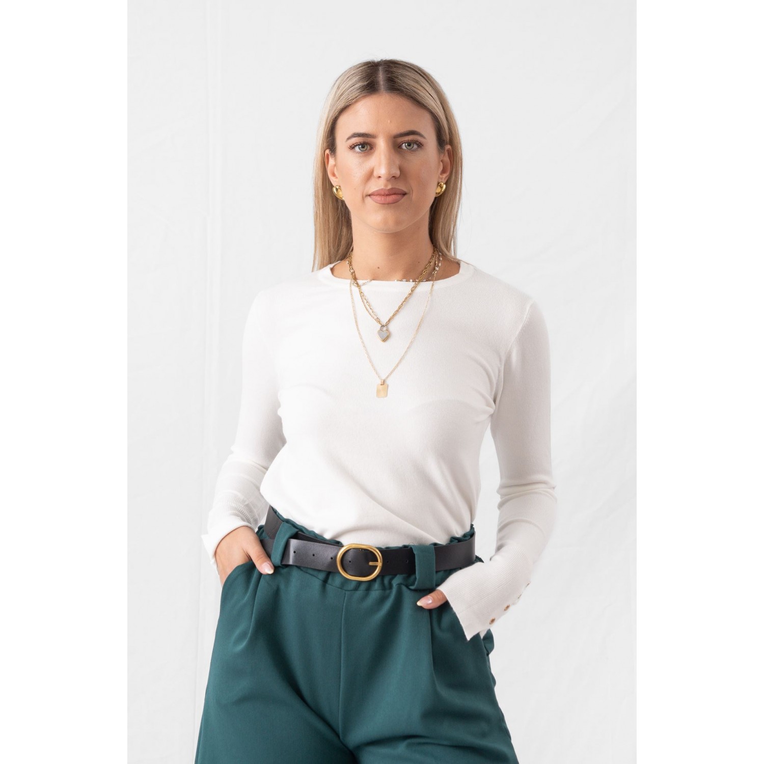 Πουλόβερ με λαιμόκοψη και διακοσμητικά κουμπάκια στα μανίκια. Το πουλόβερ είναι ένα ρούχο που υπάρχει σε κάθε ντουλάπα. Μπορεί να συνδυαστεί με τα πάντα, όλες τις ώρες και να μας δώσει την ευκαιρία να κάνουμε εντυπωσιακές εμφανίσεις. Το πουλόβερ έχει ένα μεγάλο versatility και ανάλογα το ύφασμα, το χρώμα, την πλέξη μπορείς να κάνεις τους πιο στιλάτους συνδυασμούς. Αυτός είναι και ο λόγος που θεωρείται staple κομμάτι. Φόρεσε το πουλόβερ σου με πλισέ φούστα και έχεις πετύχει το απόλυτα icon style. Είναι ένα από τα αγαπημένα μας ρούχα γιατί δίνει αυτό το glam στοιχείο στο look σου χωρίς να φαίνεται ότι έχεις προσπαθήσει πολύ. Αυτός ο συνδυασμός είναι θηλυκός, όμορφος και ιδανικός για κάθε ώρα! Ανάλογα με το χώρο εργασίας, μια πλισέ φούστα συνδυασμένη με crop πλεκτό πουλόβερ μπορεί σε βγάλει ασπροπρόσωπη. Με την επιρροή της μόδας του '90 που βλέπουμε παντού στο Instagram μας, η επιστροφή των mom jeans είναι κάτι που δεν μας άφησε ανεπηρέαστες. Ο λόγος είναι ότι η εφαρμογή κολακεύει όλες μας - είναι σφιχτά στα μέρη και χαλαρά στα πόδια, και μπορούν να συνδυαστούν άψογα με ένα crop κοντό πουλόβερ και τη ζώνη σου. Αν πάλι θες να φορέσεις το πιο μακρύ πουλόβερ σου με αυτό το τζιν, φρόντισε να βάλεις ένα μικρό μέρος του πουλόβερ μέσα σπό το τζιν, στο μπροστινό μέρος. Το υπόλοιπο άστο να πέφτει χαλαρά έξω και πέτυχες το απόλυτο fashion statement.