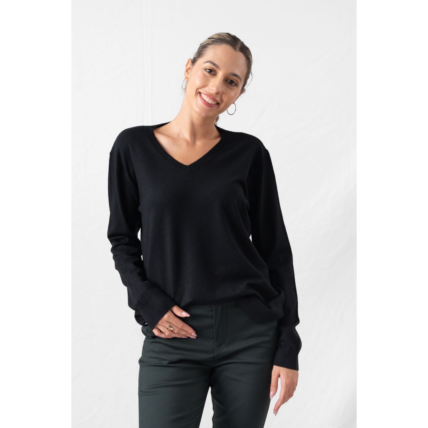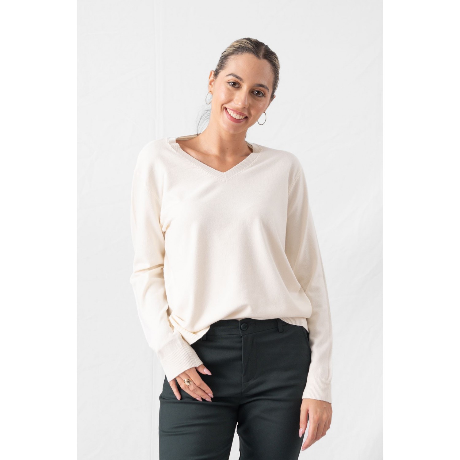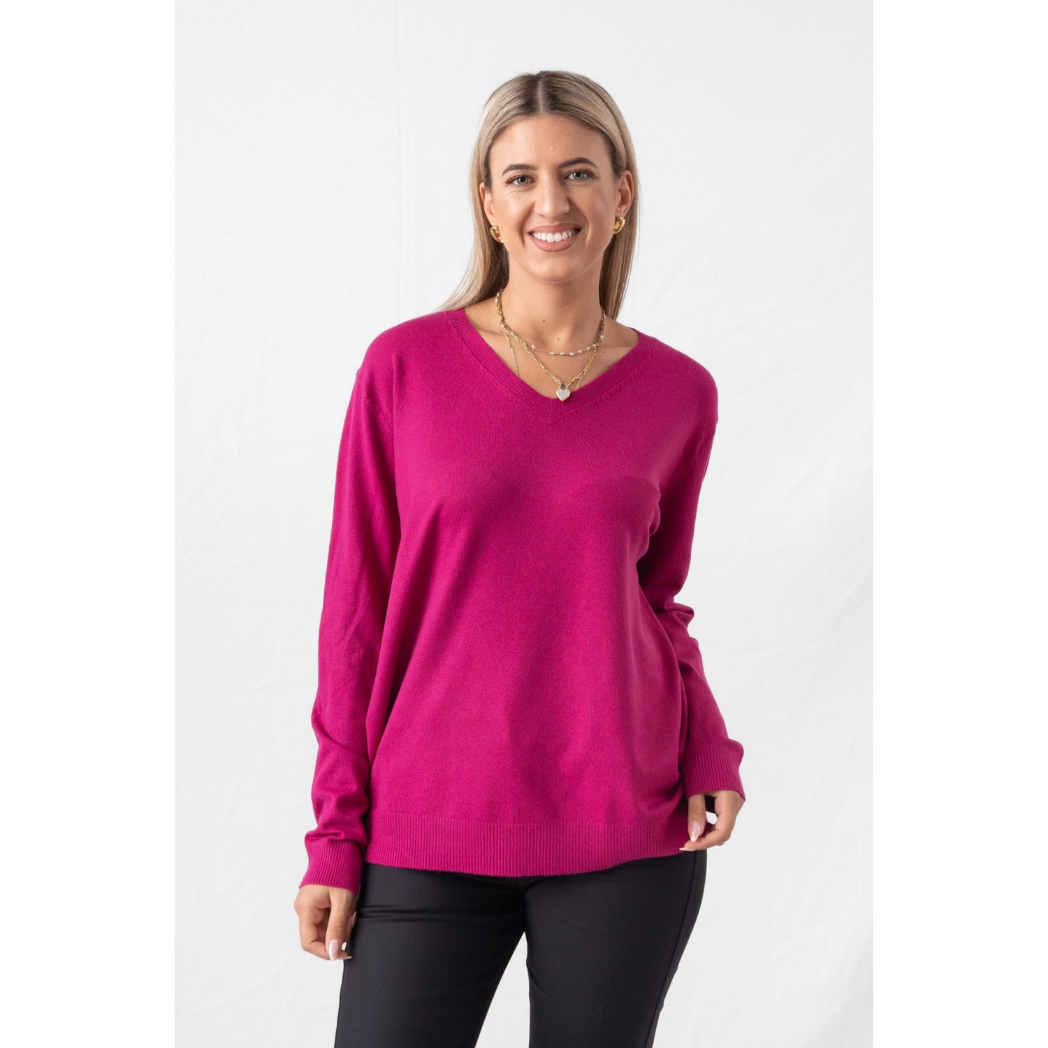 Πουλόβερ με V ντεκολτέ σε άνετη γραμμή. Το πουλόβερ είναι αυτό το essential του χειμώνα που δεν λείπει ποτέ από την γκαρνταρόμπα. Το βασικό είναι όμως να δημιουργούμε συνδυασμούς που αναβαθμίζουν το style game μας. Σίγουρα έχουμε περισσότερα από ένα πουλόβερ στην γκαρνταρόμπα μας. Ειδικά τις μέρες που δεν έχουμε καμία διάθεση για styling καταφεύγουμε σε αυτή την εύκολη λύση, αφού μπορούμε να τα συνδυάσουμε με τζιν και sneakers για το πιο comfy chic look. Στις catwalk συλλογές του χειμώνα, είδαμε τα πουλόβερ να συνδυάζονται με leather skirts ή και θηλυκές πλισέ φούστες, με baggy τζιν, ψηλόμεσα tailored παντελόνια αλλά και με leggings.