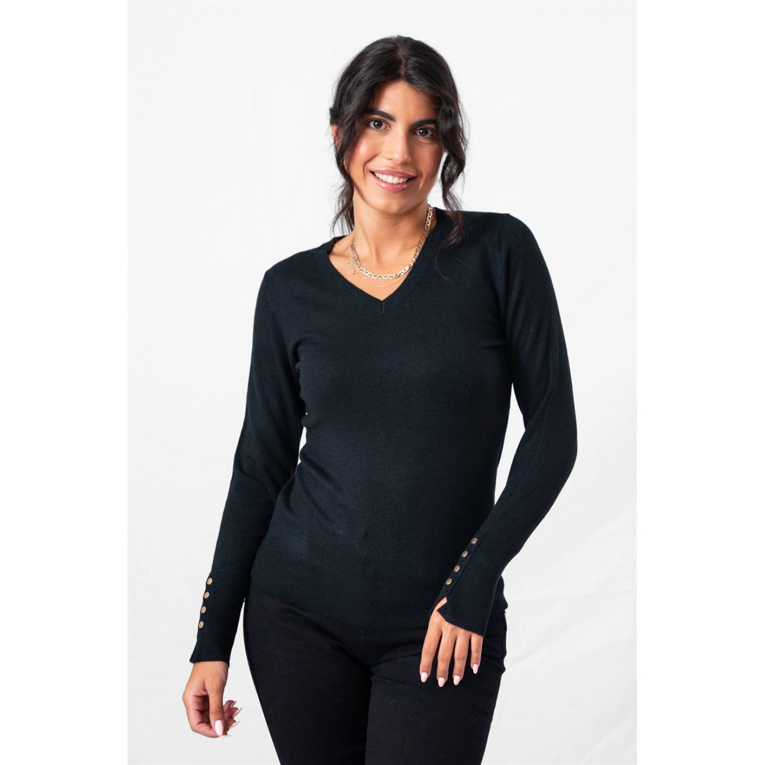 Πουλόβερ με V ντεκολτέ και κουμπιά μεταλλικά στα μανίκια. Ένα από τα ζεστά ρούχα που αγαπάμε πολύ το Φθινόπωρο / Χειμώνα, δεν είναι άλλο από το πουλόβερ. Η διάθεση που λαμβάνουμε από το street style για το πουλόβερ, επιβεβαιώνει το versatility του. Υπάρχουν οι σταθερές αξίες (ζιβάγκο, cable-knit πλεκτά), οι οποίες, όμως, «αναγεννιούνται» μέσα από oversized σιλουέτες και bold αποχρώσεις. Αν τα συνδυάσεις όλα αυτά, λοιπόν, με υπόλοιπα κλασικά κομμάτια της γκαρνταρόμπας, τότε δεν μπορείς πάρα να δημιουργήσεις σύνολα για διαφορετικές περιστάσεις κάθε φορά. Ενέδωσε σε κλασικούς συνδυασμούς ρούχων, που είναι ιδανικοί για τα looks του γραφείου. Πρόσφερε ένα twist σε αυτά, συνδυάζοντας, για πχ ένα πουλόβερ με cut outs με ένα ψηλόμεσο υφασμάτινο παντελόνι. Ολοκλήρωσε με αξεσουάρ για ένα πιο ενδιαφέρον αποτέλεσμα.