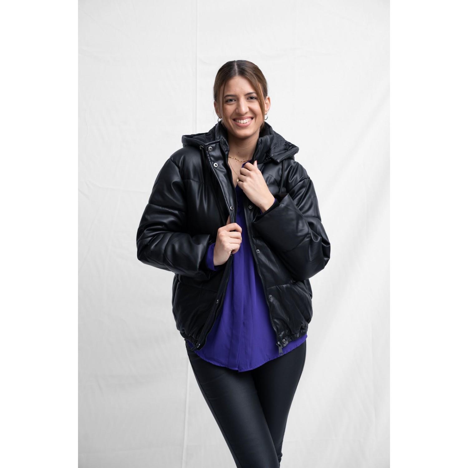 Μπουφάν δερμάτινο με κουκούλα και μπροστινές τσέπες. Κλείσιμο με φερμουάρ. Σε περίπτωση που δεν έχεις ένα puffer jacket σου προτείνω να αποκτήσεις ένα γιατί πολύ απλά αξίζει να το έχεις στην ντουλάπα σου. Εκτός του ότι είναι πολύ ζεστό, ταυτόχρονα είναι το must – have πανωφόρι της σεζόν. Το puffer έχει έναν sporty χαραχτήρα, κάτι που σημαίνει ότι ταιριάζει απόλυτα με athleisure stylings. Μπορείς να το συνδυάσεις με μια σαλοπέτα, ένα πουλόβερ, sneakers και tote bag για ένα urban cool outfit ή να τολμήσεις να το συνδυάσεις με ένα track pants, ένα πουλόβερ και slingbacks. Απόλυτα in fashion και εντυπωσιακό. Ας παραδεχτούμε όμως ότι ο συνδυασμός τζιν και puffer είναι από τα πιο μοναδικά stylings που μπορείς να κάνεις. Σίγουρα μπορείς να φορέσεις ένα total denim σύνολο με βασικά κομμάτια ένα τζιν κι ένα denim jacket, κι από πάνω να προσθέσεις το αγαπημένο σου puffer δημιουργώντας το απόλυτο layering. Επιπλέον, μας αρέσει πολύ με mom jeans και sock boots.