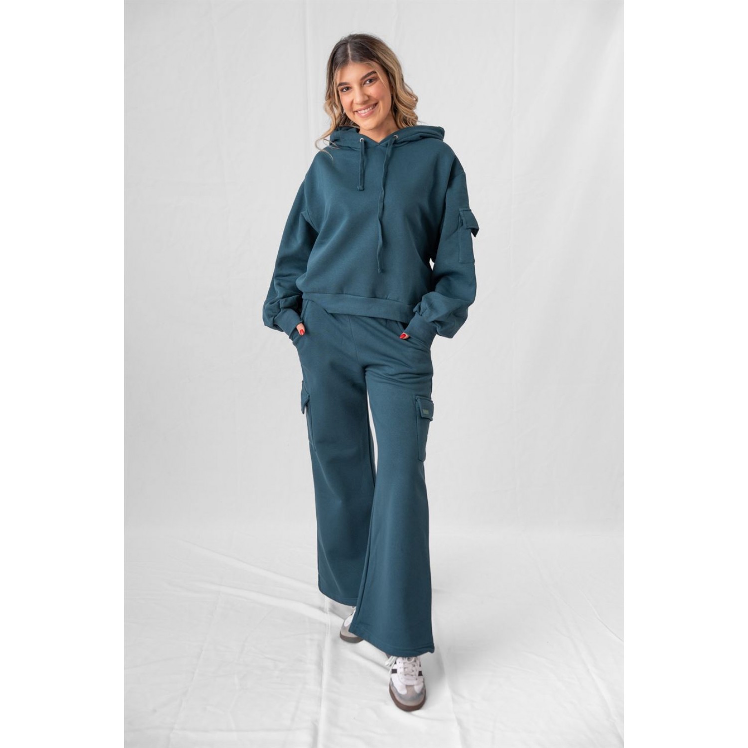 Φούτερ με κουκούλα και παντελόνι με λάστιχο στο πάνω και κάτω μέρος. Διαθέτει πλαινές τσέπες. Το σετ αθλητικής φόρμας, που φέτος αποτελεί κορυφαία τάση στη μόδα, ήταν μέχρι πρόσφατα η τέλεια επιλογή κυρίως για τη γυμναστική και την άνεση στο σπίτι. Πλέον όμως μπορεί να φορεθεί με άπειρους τρόπους και να γίνει το βασικό κομμάτι για sporty chic outfits που θα σε κάνουν να κερδίσεις τις εντυπώσεις, επιλέγοντας μια άνετη και όμορφη εμφάνιση. Πρόκειται για ένα must have item που κάθε fashionista λατρεύει! Η πιο κλασική επιλογή για ντύσιμο με αθλητική φόρμα είναι το φούτερ σετ. Συνδυάζοντας λοιπόν ένα ίδιο hoodie με το αθλητικό του παντελόνι και τα sneakers σου μπορείς να δημιουργήσεις το απόλυτο sporty look. Κι αν ο καιρός απαιτεί πανωφόρι, κανένα πρόβλημα. Μπορείς να επιλέξεις είτε ένα ελαφρύ τύπου αντιανεμικό ή τζιν, είτε κάποιο πιο χοντρό όπως το φλις ή το φουσκωτό. Καθένα τους προσδίδει άλλο στυλ στο ντύσιμο με φόρμα, αλλά είναι εξίσου εντυπωσιακό.