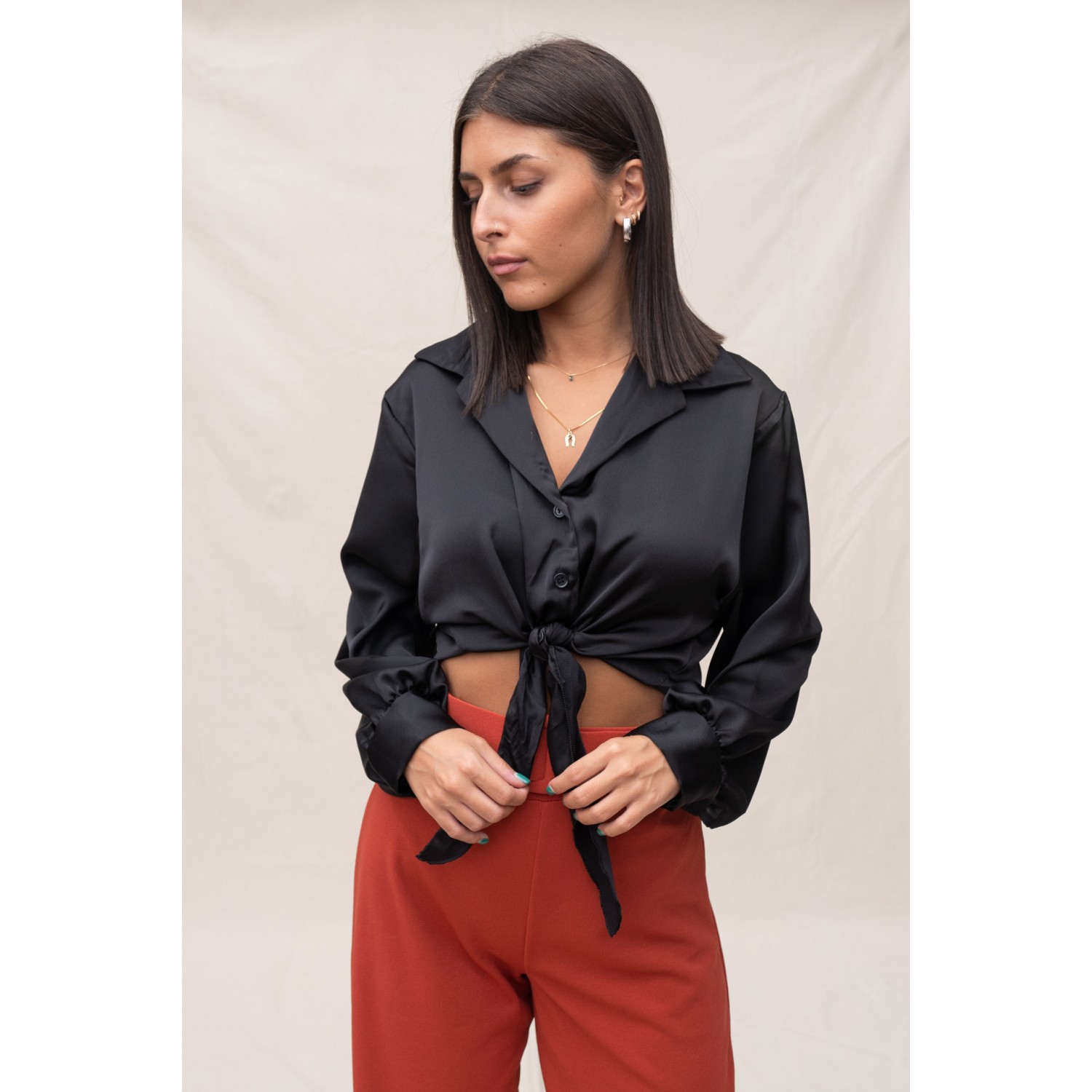 Τοπ πουκάμισο με γιακά και κλείσιμο με κουμπιά. Έχει δέσιμο μπροστά. Μπορείς να το συνδυάσεις με το αγαπημένο σου τζιν για μια πρωινή βόλτα ή με μια παντελόνα σε φαρδιά γραμμή για ένα πιο βραδινό outfit.