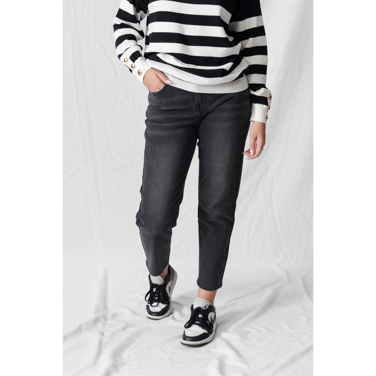 Τζιν ψηλόμεσο mom fit με τσέπες μπρος και πίσω. Κλείσιμο με φερμουάρ και μεταλλικό κουμπί. Ξέρω γιατί έχουν τόση επιτυχία τα mom jeans. Πρόκειται για ένα διαχρονικό στιλ τζιν παντελονιού που το διακατέχει μια 80s, ρετρό αισθητική. Η ψηλόμεση γραμμή και χαλαρή σιλουέτα του προσφέρουν μια άνετη εφαρμογή. Μια που κολακεύει τους περισσότερους σωματότυπους και που φροντίζει στο να υπάρχει μια σύγχρονη διάθεση στα everday σύνολά μας. Για το απόλυτα διαχρονικό look, συνδύασε το τζιν αυτό με ένα λευκό πουκάμισο, ζακέτα και λευκά sneakers όπου συνθέτουν το πιο αβίαστα κομψό casual outfit. Φόρεσε τα mom jeans σου με ένα oversized πουλόβερ και clogs για ένα πιο ρετρό look.