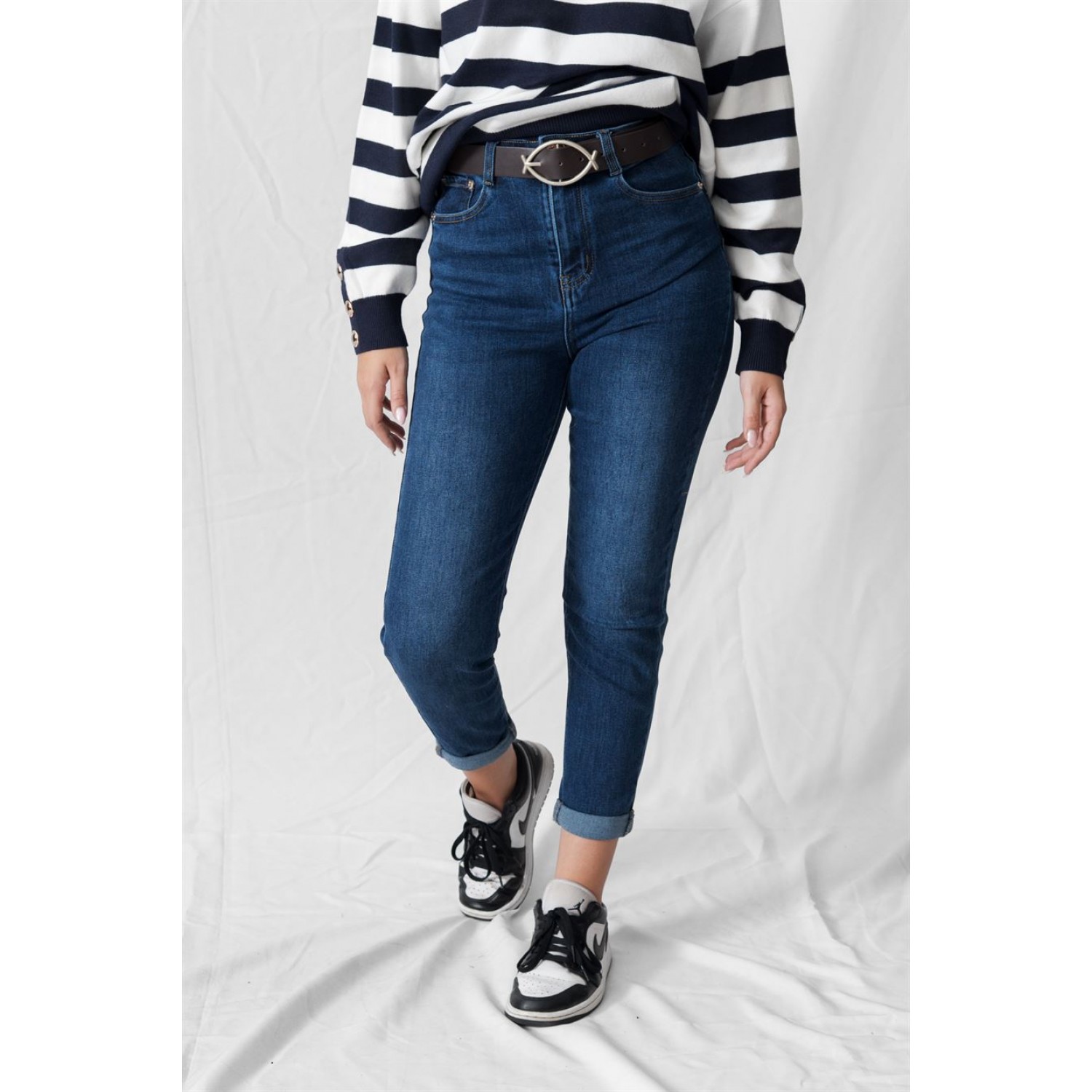 Τζιν ψηλόμεσο mom fit με τσέπες μπρος και πίσω. Κλείσιμο με φερμουάρ και μεταλλικό κουμπί. Ξέρω γιατί έχουν τόση επιτυχία τα mom jeans. Πρόκειται για ένα διαχρονικό στιλ τζιν παντελονιού που το διακατέχει μια 80s, ρετρό αισθητική. Η ψηλόμεση γραμμή και χαλαρή σιλουέτα του προσφέρουν μια άνετη εφαρμογή. Μια που κολακεύει τους περισσότερους σωματότυπους και που φροντίζει στο να υπάρχει μια σύγχρονη διάθεση στα everday σύνολά μας. Για το απόλυτα διαχρονικό look, συνδύασε το τζιν αυτό με ένα λευκό πουκάμισο, ζακέτα και λευκά sneakers όπου συνθέτουν το πιο αβίαστα κομψό casual outfit. Φόρεσε τα mom jeans σου με ένα t-shirt και oversized σακάκι για ένα πιο βραδινό λουκ.